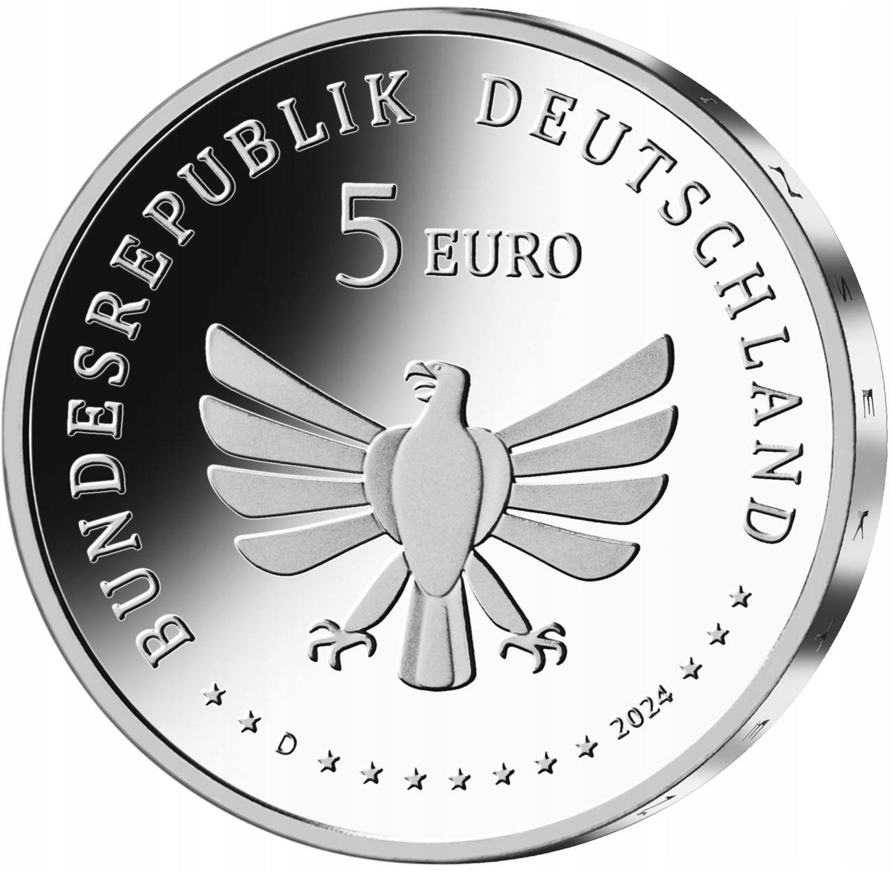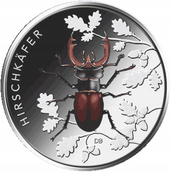 Niemiecka moneta kolekcjonerska z 2024 roku o nominale 5 euro przedstawiająca chrząszcza jest ósmą z serii "Cudowny świat owadów", w ramach której w latach 2022-24 zostanie wyemitowanych łącznie dziewięć monet z częściowo kolorowymi motywami. Seria ta zwraca uwagę na szczególną grupę zwierząt, które stanowią istotną część naszego dziedzictwa przyrodniczego, również na tle aktualnych wydarzeń (wymieranie owadów). Strona obrazkowa przedstawia największego chrząszcza w Europie Środkowej - jelonka rogacza, siedzącego na liściach dębu. Rewers przedstawia orła, napis "BUNDESREPUBLIK DEUTSCHLAND", wartość i nominał, rok 2024, dwanaście gwiazd Europy oraz literę "D" oznaczającą Państwową Mennicę w Monachium. Na gładkiej krawędzi monety wytłoczony jest napis: "WUNDERWELT INSEKTEN" (WSPANIAŁY ŚWIAT OWADÓW).
