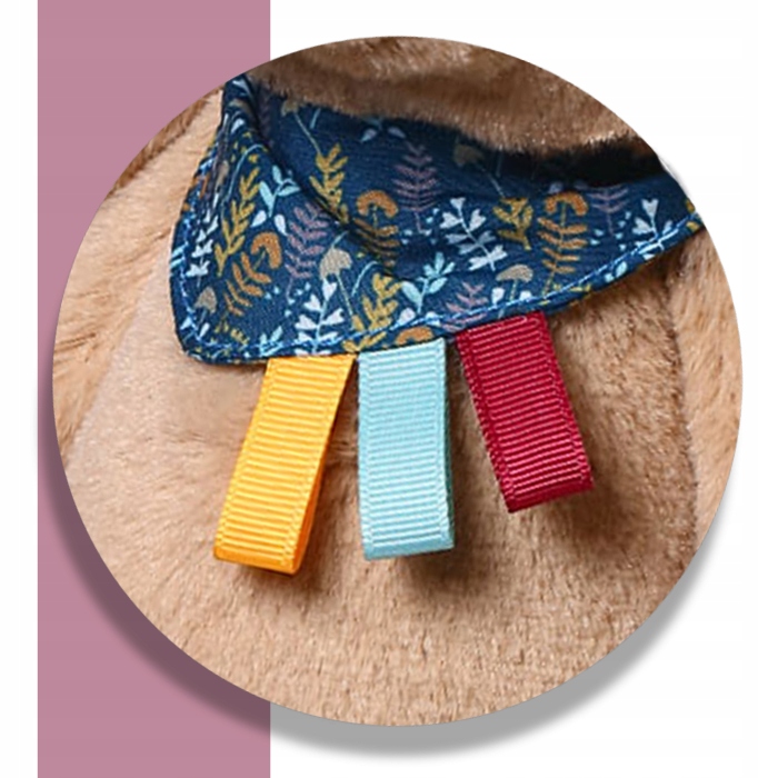 Maskotka powstała z delikatnych tkanin, całkowicie bezpiecznych dla wrażliwej skóry Twojego dziecka.