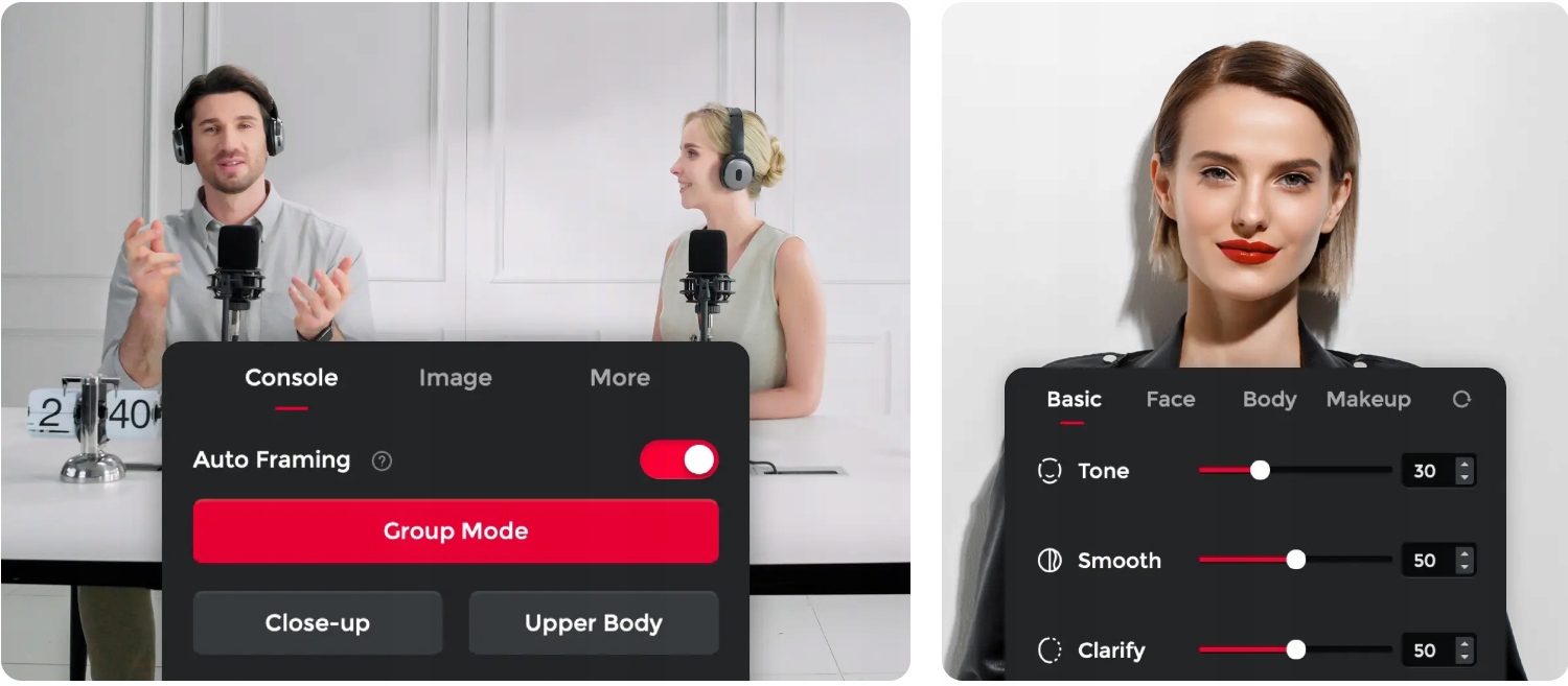 Dzięki aplikacji Obsbot Center uzyskujesz możliwość pełnego zarządzania kamerą, wszystkimi jej parametrami oraz funkcjami, między innymi:
