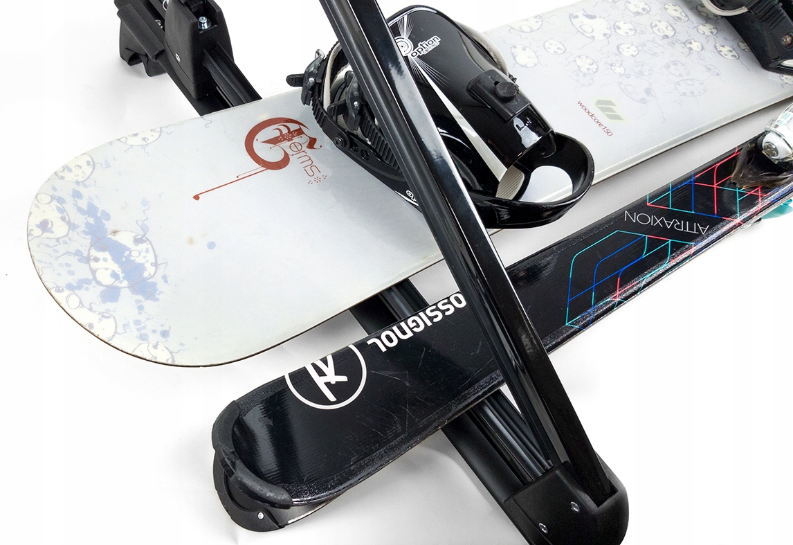 Elastyczne, gumowe szczęki trzymające sprzęt w uchwycie oraz specjalny zacisk zapewniają bezpieczne przewożenie zarówno dla Twojego samochodu, jak i samych nart i desek.