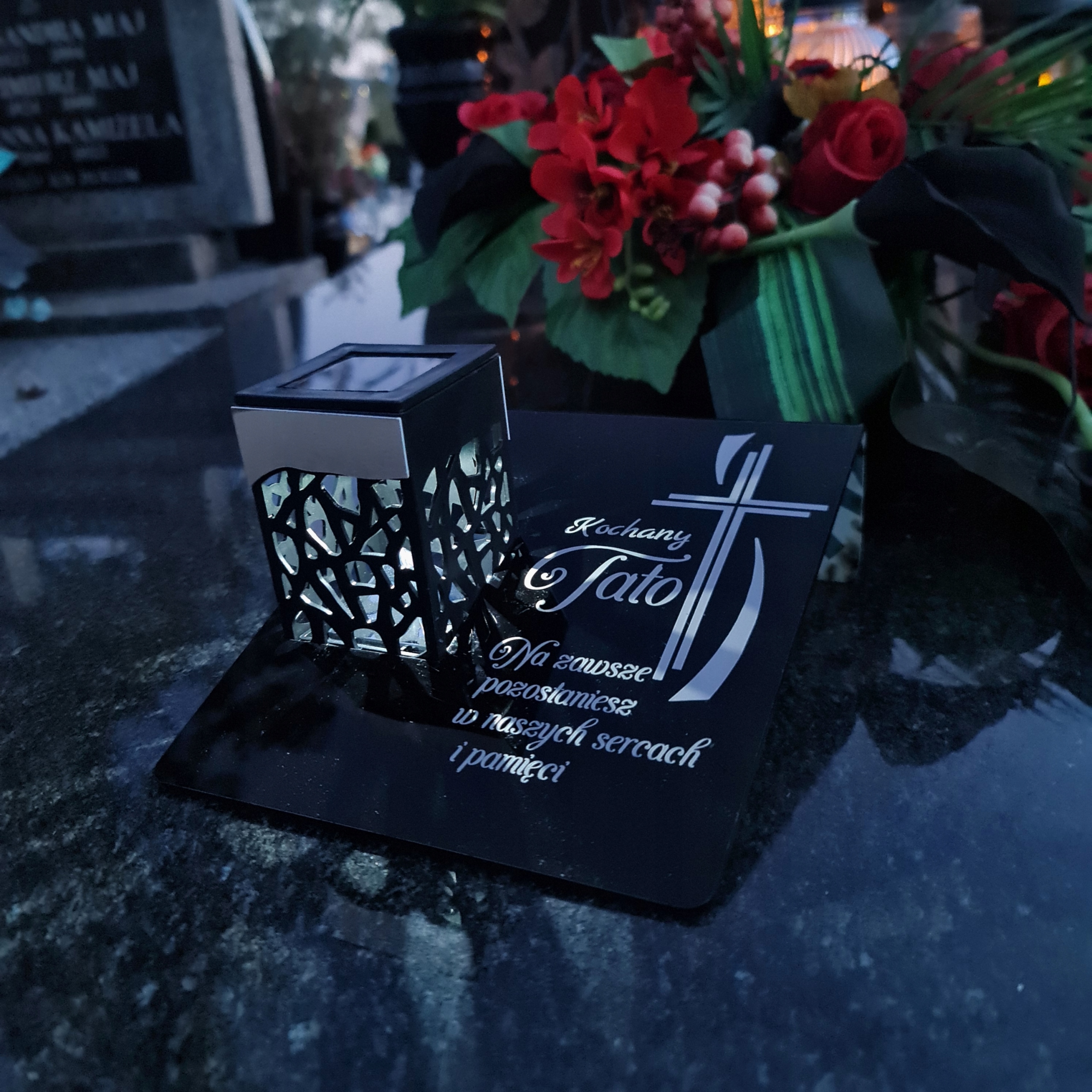 ZNICZ SOLARNY Wieczna latarenka LED STATUETKA NA GRÓB lampka dla TATY