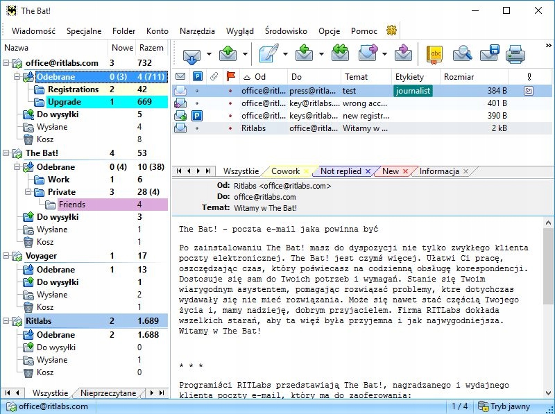 Поиск и сортировка в The Bat! благодаря передовому двигателю. Program The Bat! он очень хорошо обрабатывает прикрепленные файлы и его инструмент импорта позволяет легко обрабатывать файлы, экспортированные от других клиентов почтовых.