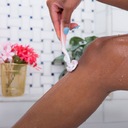 Ostrza wymienne do maszynki do golenia są wyposażone w paski żelowe, które uwalniają balsam do ciała o zapachu białej herbaty, ułatwiając poślizg i zapewniając komfort. Obrotowa konstrukcja dopasowuje się do konturów ciała.