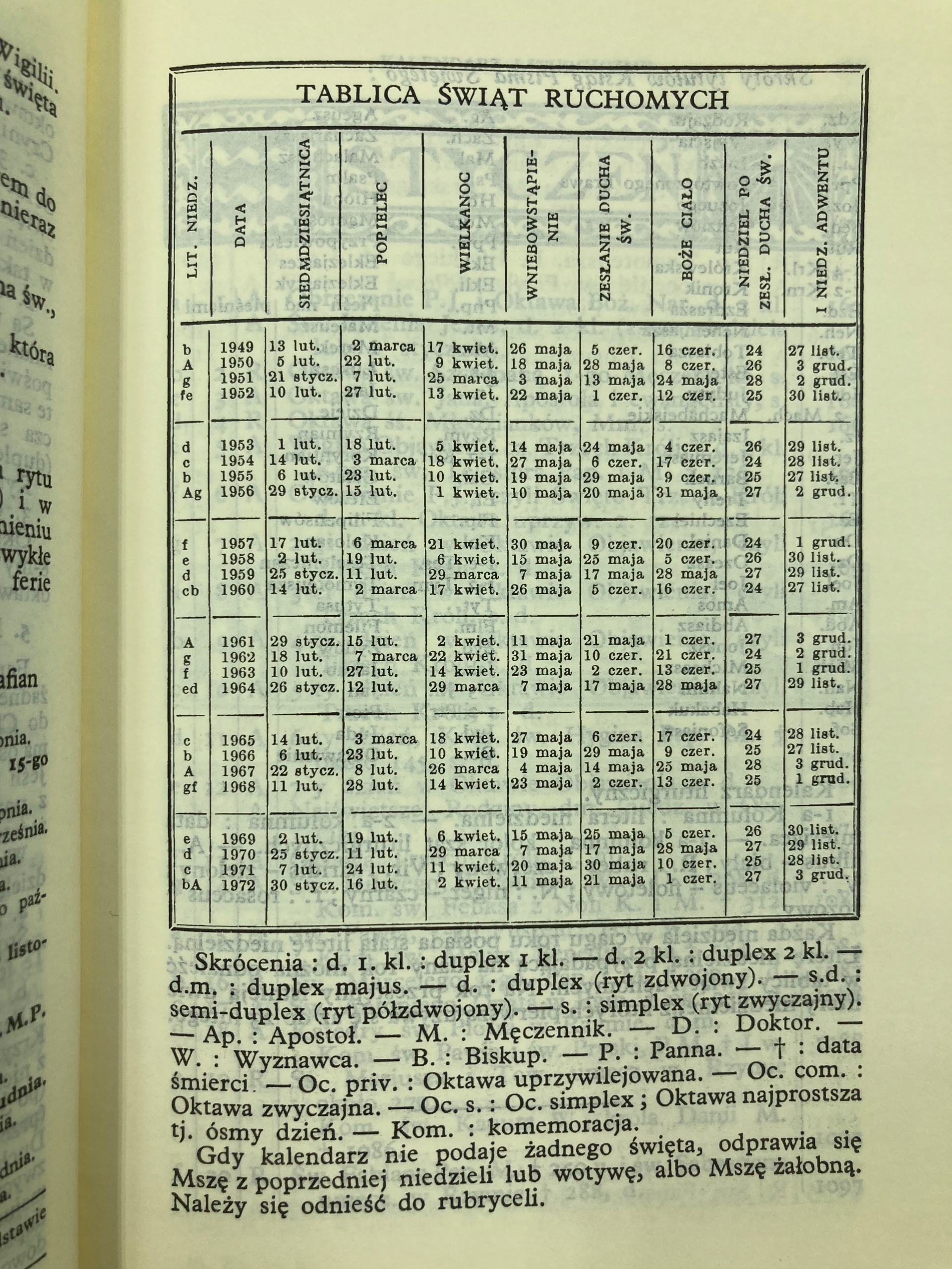 Wydana w 1962 r. ostatnia edycja Mszału Rzymskiego była zubożona o wiele elementów które były w nim w ciągu wieków. Zaletą obecnego wydania jest to, że zawiera niezmienione modlitwy i pełny tradycyjny kalendarz z oktawami świąt i wigiliami (zniesionymi po 1956 r.).