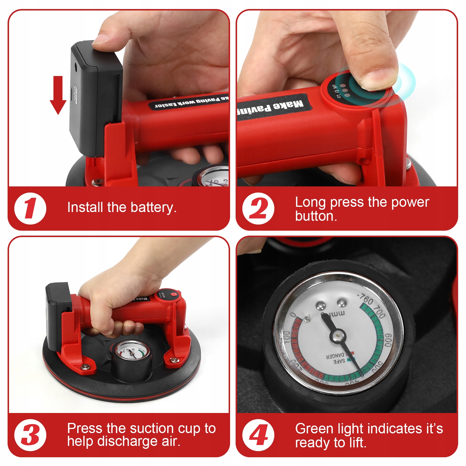 Przyssawka elektryczna umożliwia bezpieczne podnoszenie danych o gładkiej i suchej powierzchni, takich jak płytki ceramiczne, gres czy szkło, poprzez generowanie podciśnienia stabilną zasilania.