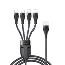 Kabel wyposażony jest w dwa złącza Type-C oraz dwa złącza Lightning, co umożliwia jednoczesne ładowanie 4 urządzeń jednocześnie.