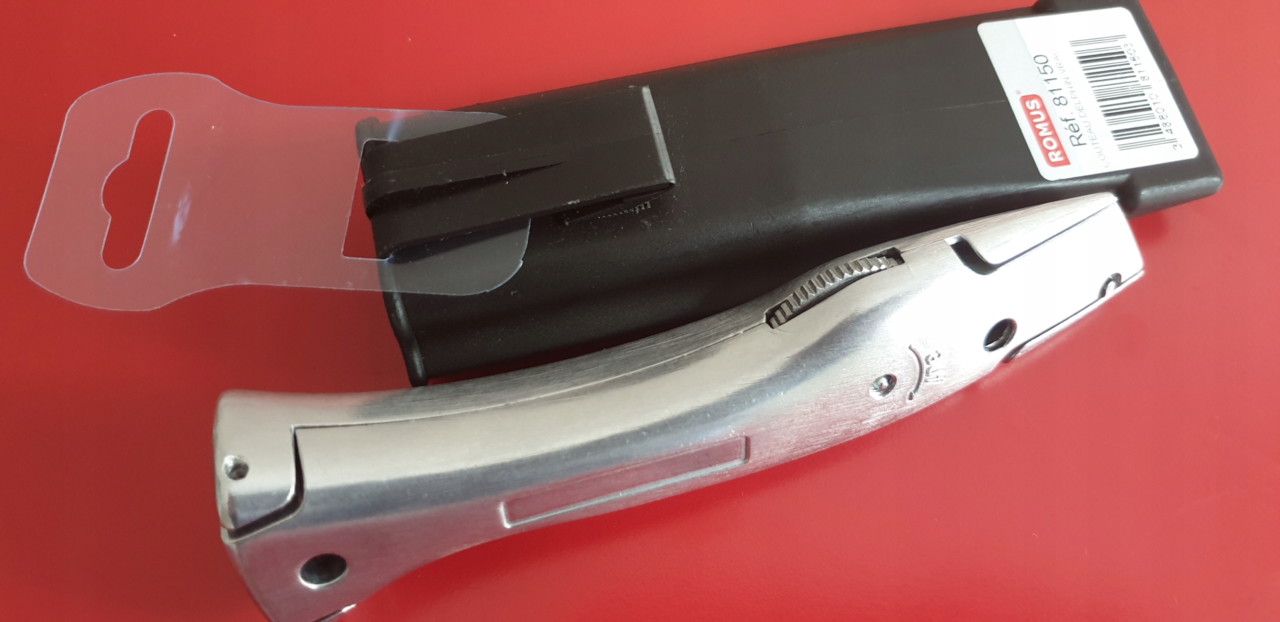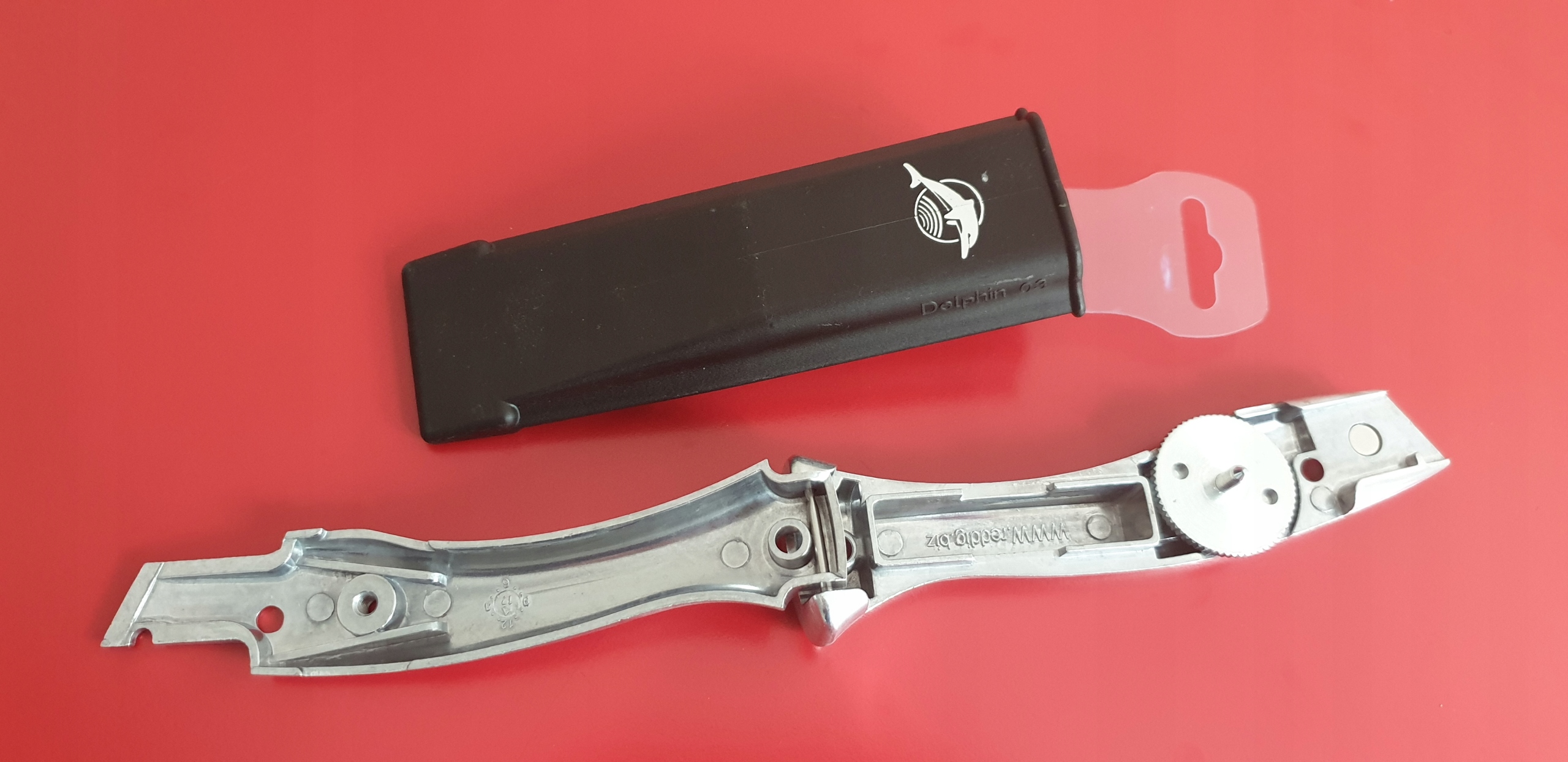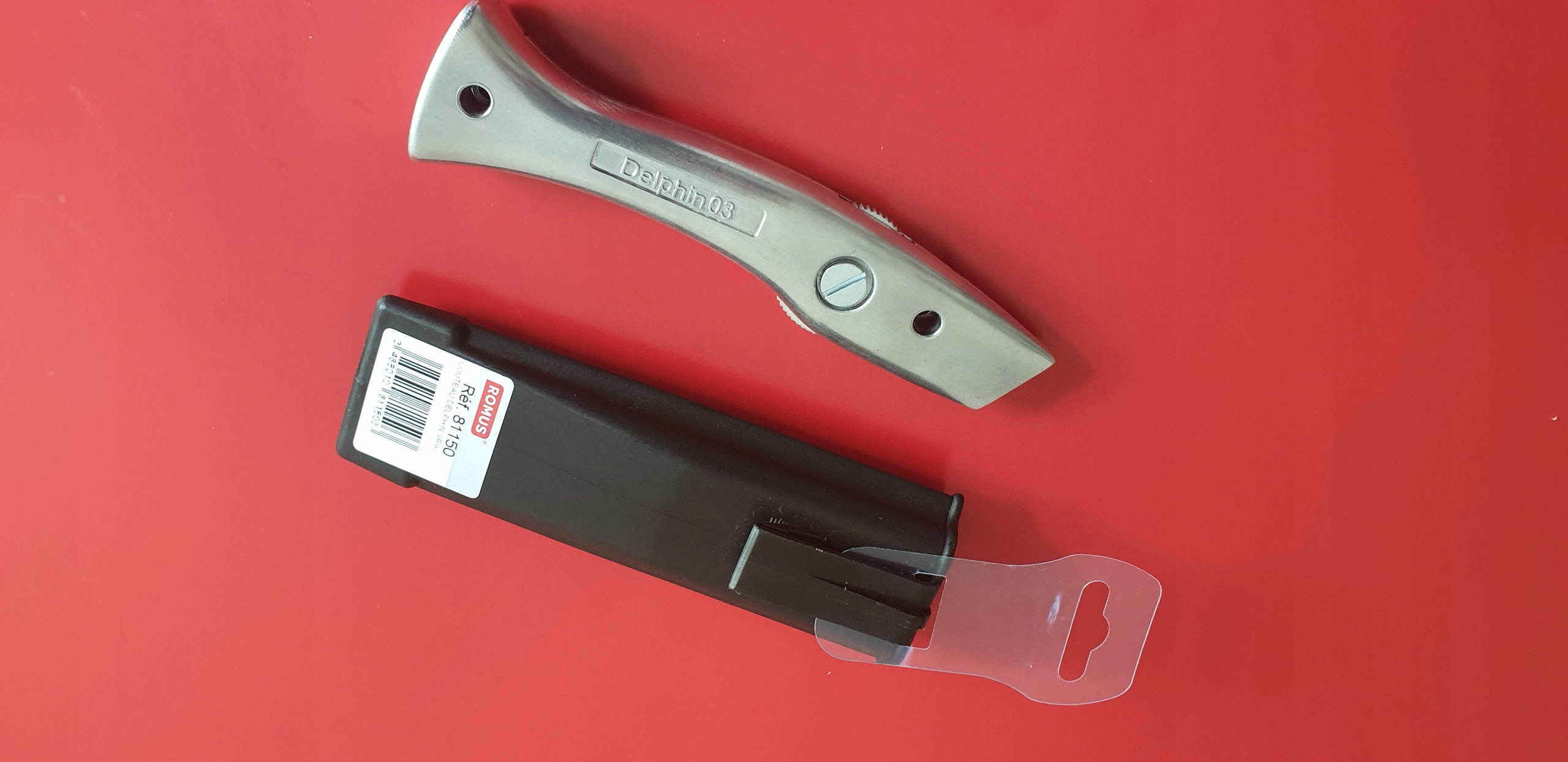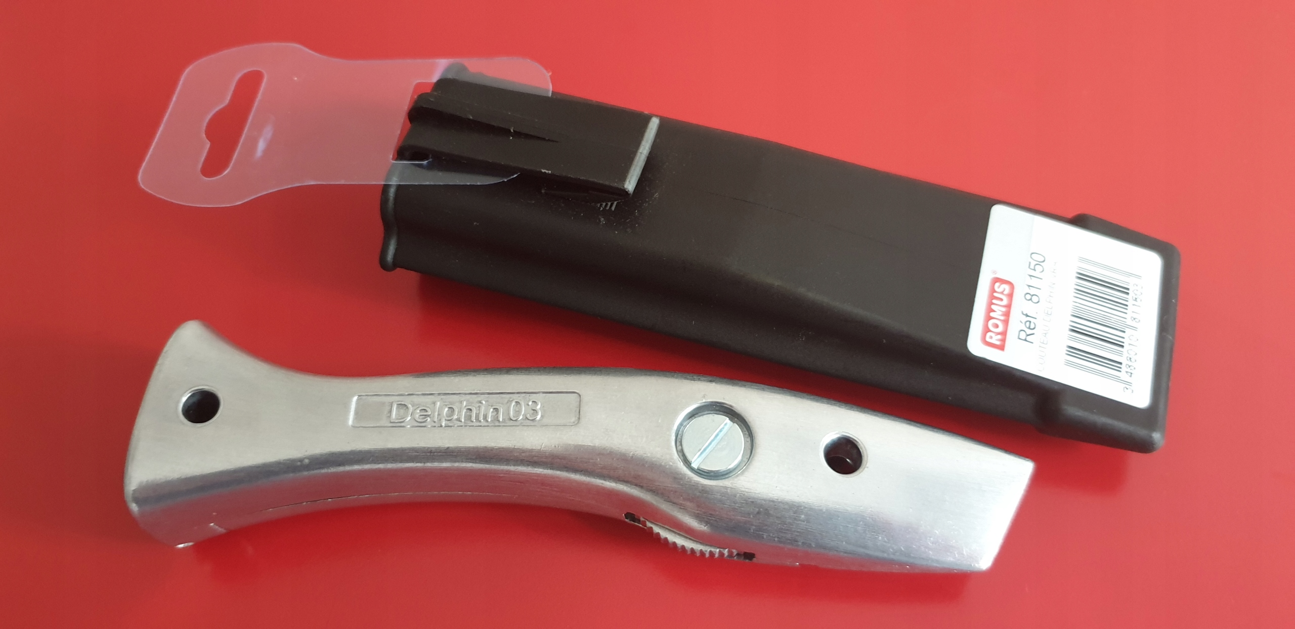 NOVA Technologie Obiektowe sp. j. oferuje profesjonalny nóż Delphin 81150 z aluminiowym korpusem. Otwierany za pomocą pokrętła umieszczonego pośrodku. Dostarczany w blistrze z plastikową osłoną. Możliwość zamontowania ostrza prostego lub zahaczonego.