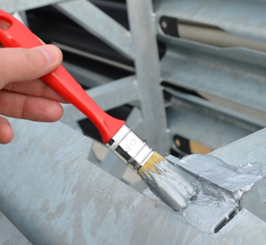 Farba aluminiowo-cynkowa pigmentowana jest pyłem aluminiowym oraz dodatkowo zawiera pył cynkowy.