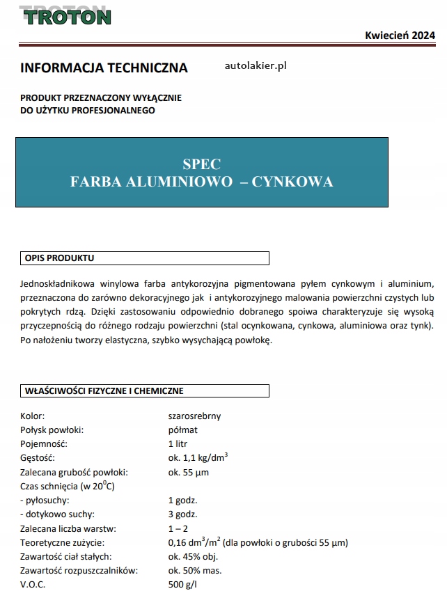 Farba aluminiowo-cynkowa pigmentowana jest pyłem aluminiowym oraz dodatkowo zawiera pył cynkowy.