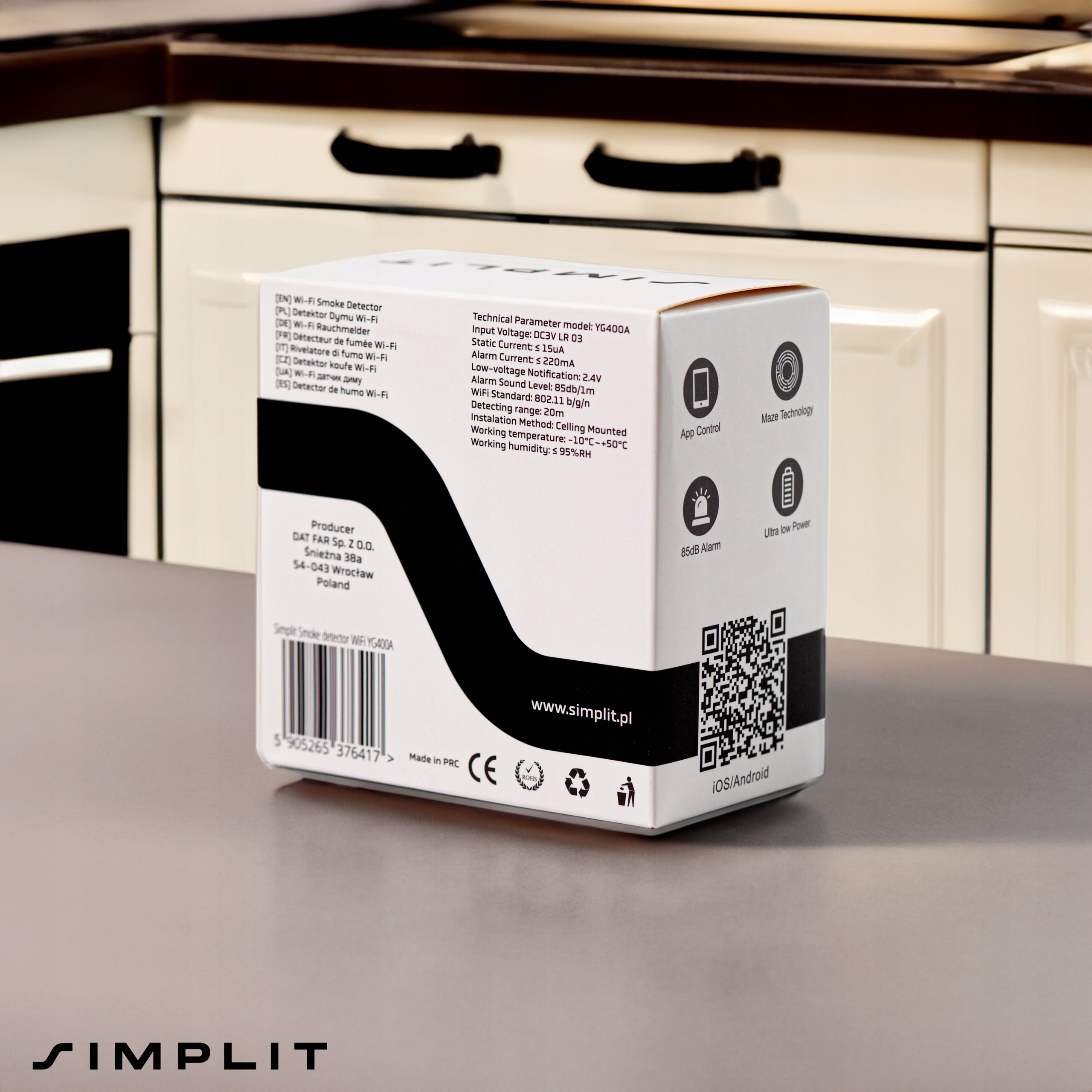 ✅ Połączenie czujnika SIMPLIT z dedykowaną aplikacją tworzy zaawansowany system monitoringu i powiadamiania. Gdy czujnik wykryje dym, aplikacja natychmiast otrzymuje sygnał i wysyła powiadomienie na urządzenie mobilne użytkownika. Umożliwia to zdalne śledzenie stanu czujnika, otrzymywanie alertów i podejmowanie szybkich działań, nawet będąc poza domem. Dzięki tej integracji, użytkownik ma pełną kontrolę nad bezpieczeństwem swojego domu, a współpraca czujnika z aplikacją staje się skutecznym narzędziem ochrony w czasie rzeczywistym.