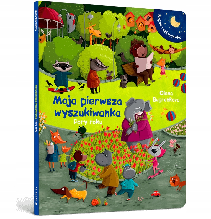 Wesołe zwierzęta nie mają czasu na leniuchowanie! Zimą jeżyki urządzają chatkę z lodu, słoń robi śnieżnego anioła, a lew jeździ na sankach. Wiosną zające zaczynają ćwiczyć, a rodzina chomików wyciąga maty do jogi. W upalne letnie dni niedźwiadki grają w badmintona, a krowa chwyta wiatr w żagle. Jesienią borsuk wybiera się na grzybobranie, a rodzina rudych lisków prowadzi zbiory w ogrodzie. Baw się ze zwierzątkami, poznawaj pory roku i koniecznie znajdź tych wszystkich bohaterów.