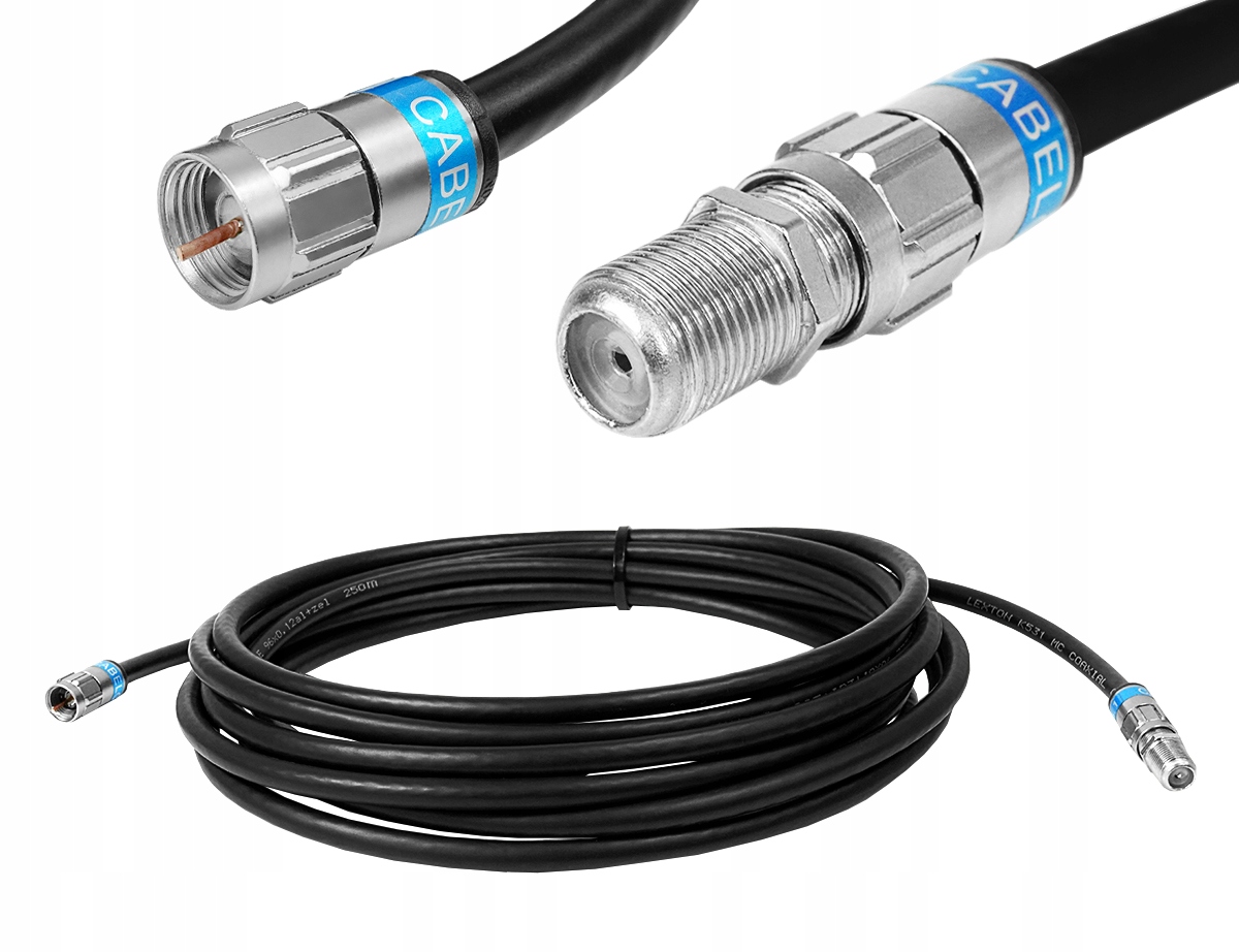 Gotowy kabel antenowy z wtykiem męskim F i gniazdem F.