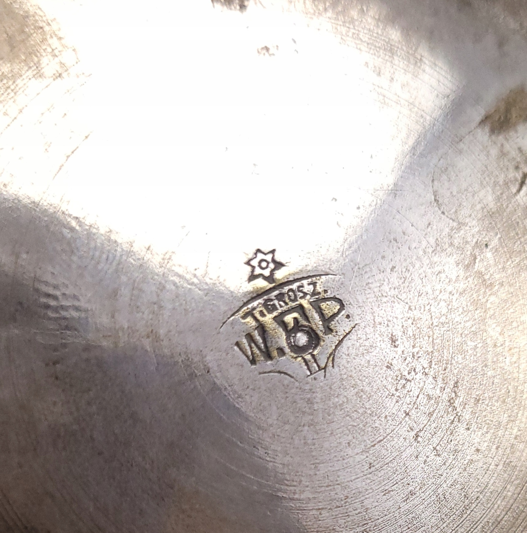 Posrebrzana duża cukiernica - oznaczenie na spodzie WFP T.Grosz. - Teodor Groszkowski Warszawa, lata 20-te XXw.