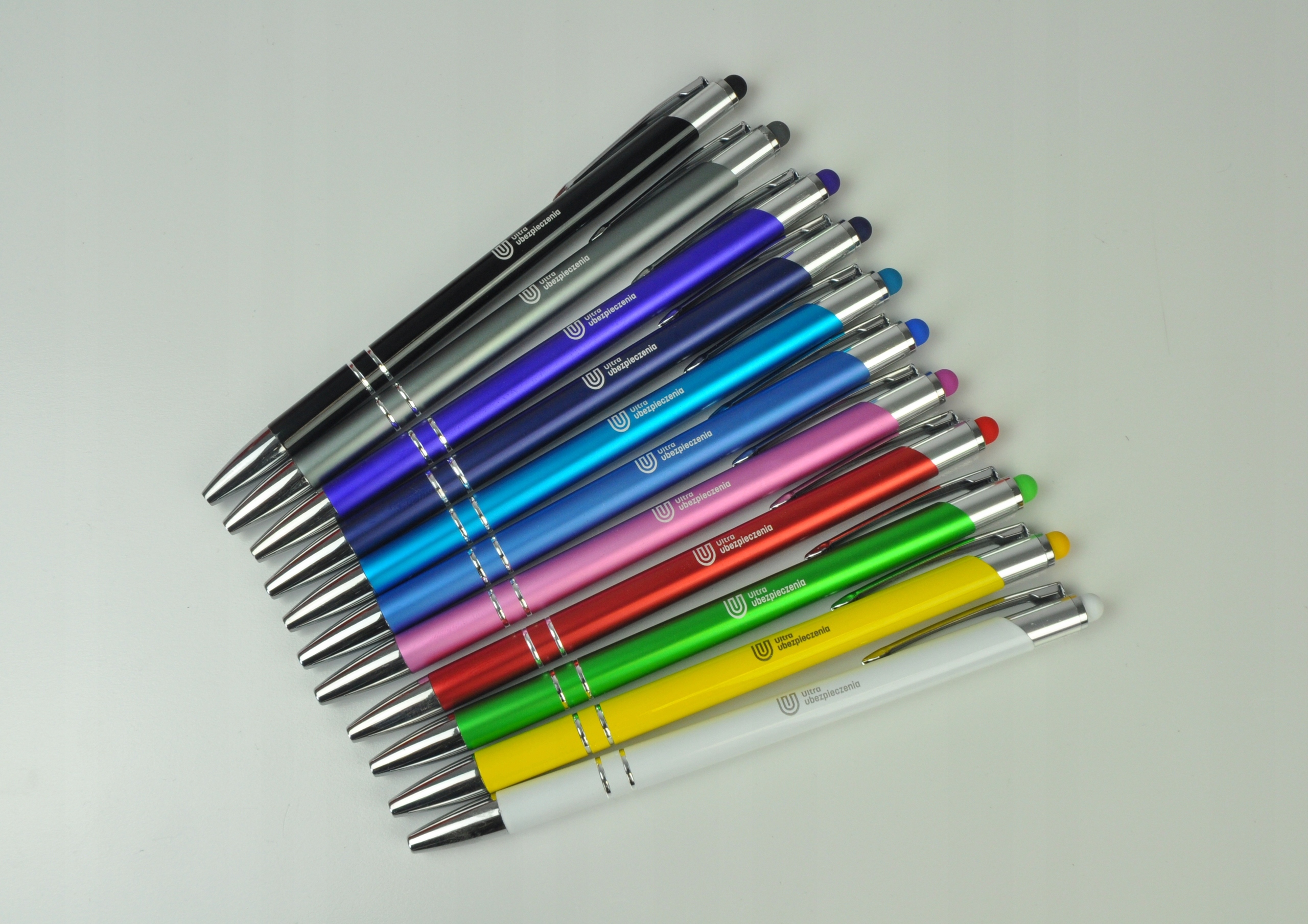 Długopisy metalowe Bello Touch Pen z gumką do ekranów dotykowych z jednostronnym grawerem.