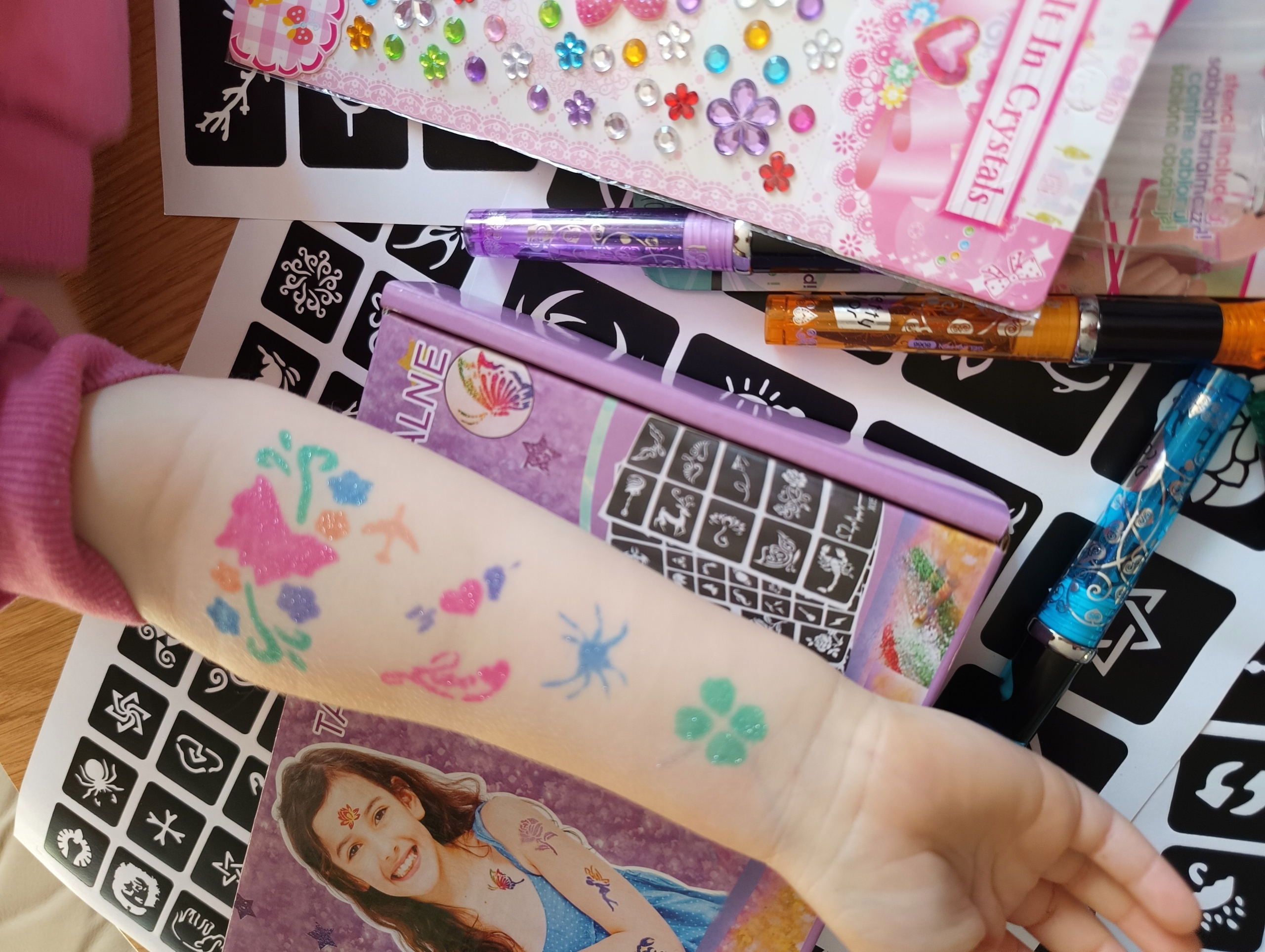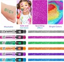✅Teraz możesz robić tatuaże szybko i czysto bez pylenia dokoła sypkiego brokatu. Dzięki specjalnym długopisom , które posiadają brokatowy żel do robienia tatuaży zrobisz je szybko , precyzyjnie i czysto ! Koniec z nanoszeniem kleju, który brudził szablony. Koniec z brokatem, który potem ciężko posprzątać.