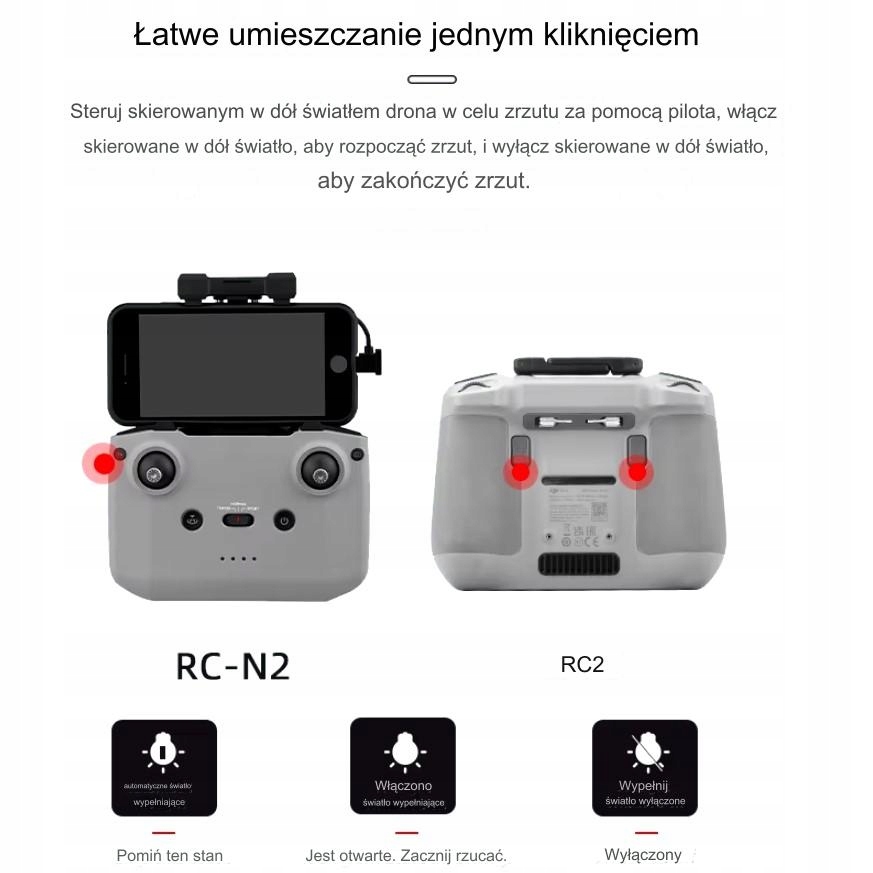 System zrzutu dla DJI MINI 4 PRO3, to gadget umożlwiający przenosić i zrzucać lekkie ładunki do max. 100g w zasięgu wzroku. Można go używać do robienia ciekawych niespodzianek, do przenoszenia zestawów wędkarskich na dużo większe odległości niż zasięg wędki, może również służyć przy akcjach ratunkowych. System działa na światło białe, mechanizm jest wyposażony w światłoczuły sensor który steruje systemem otwierania i zamykania zrzutni. Do tego celu wykorzystuje światło diody zamieszczonej na spodzie drona. Zapraszam również do zapoznania się z resztą moich ogłoszeń w zakładce "wszystkie przedmioty sprzedającego"