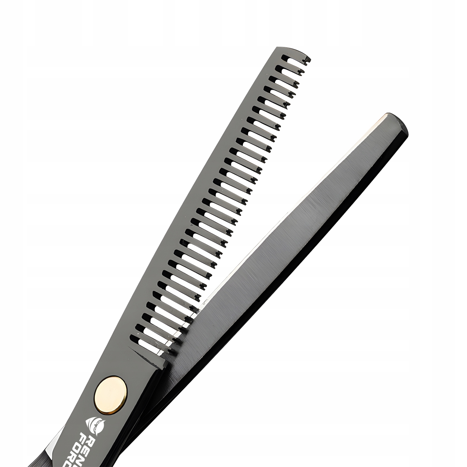 Elegancki design - Nasze nożyczki fryzjerskie degażówki nie tylko zapewniają doskonałe cięcie, ale także prezentują się stylowo. Ich elegancki i profesjonalny wygląd dodaje pewności siebie zarówno fryzjerowi, jak i klientom. Bądź dumny z narzędzi, które używasz!