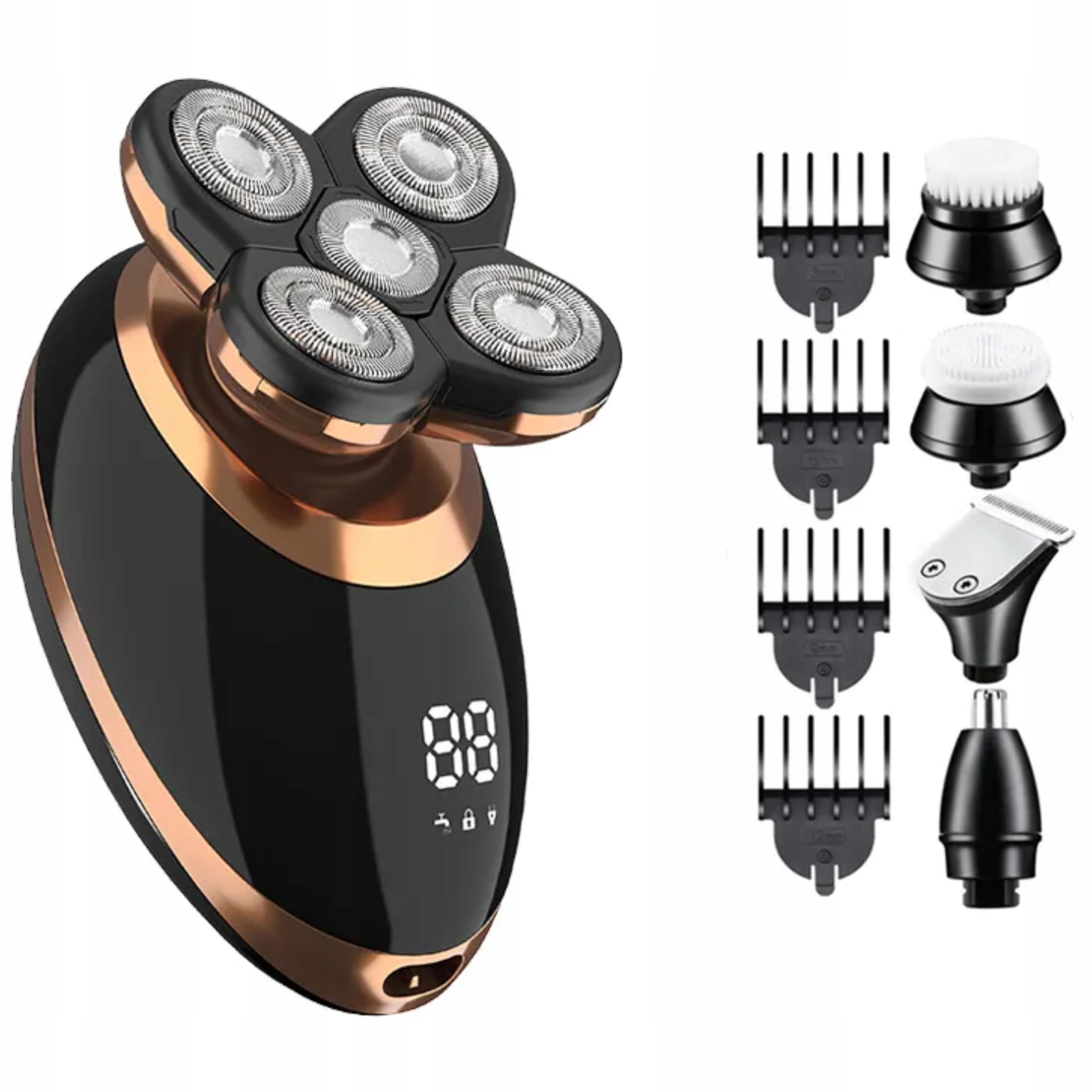 Golarka Alpha TR5-PRO to wielofunkcyjne urządzenie, które zapewni Ci wszystko to, czego potrzebujesz do codziennej pielęgnacji. Ta wszechstronna maszynka łączy w sobie golarkę, trymer do brody, nosa i uszu oraz szczoteczkę do oczyszczania twarzy. Z Alpha TR5-PRO nie musisz się już więcej martwić o stan naładowania pozostałych urządzeń czy koszt zakupu kolejnych akcesoriów, ponieważ wszystko znajdziesz w zestawie.