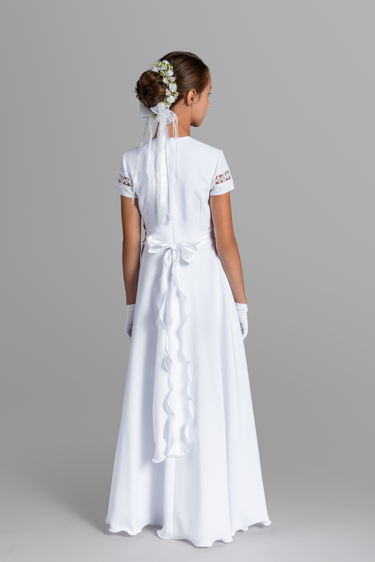 Alba sukienkowa PM508 to połączenie wygody, funkcjonalności i piękna. Dzięki starannie dobranym materiałom i przemyślanemu krojowi, każda dziewczynka poczuje się w niej wyjątkowo podczas Pierwszej Komunii Świętej. Transparentna koronka oraz doskonałe dopasowanie do sylwetki sprawiają, że alba wygląda jeszcze piękniej na żywo, zachwycając swoją subtelną elegancją.