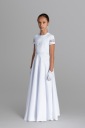 Alba sukienkowa PM508 to wyjątkowy wybór dla dziewczynek przystępujących do Pierwszej Komunii Świętej. Ten model łączy w sobie elegancję sukienki z klasycznym wyglądem alby, tworząc strój idealny na tę szczególną uroczystość.