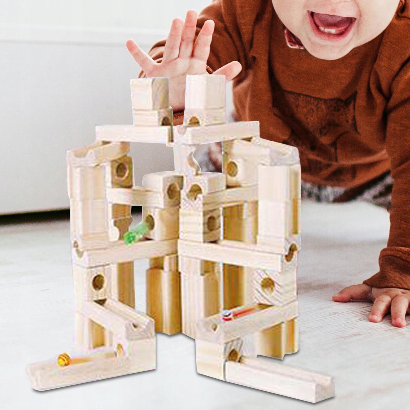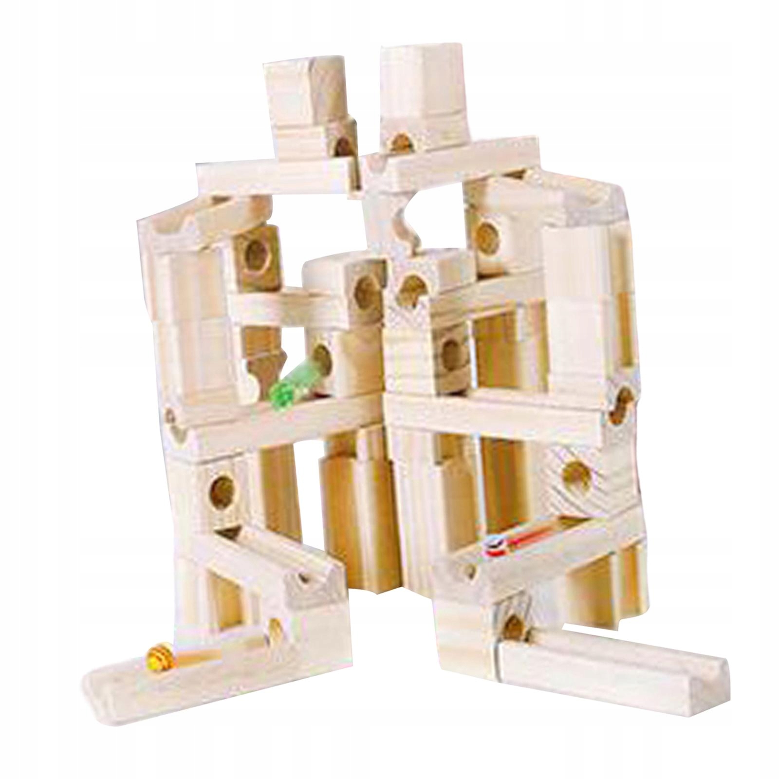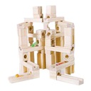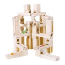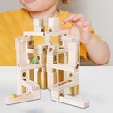 Zabawka edukacyjna: dzieci do samodzielnego budowania klocków, marmury podróżują przez specjalnie zaprojektowany labirynt ze skośnymi otworami i kanałami w ramach ukształtowanych drewnianych klocków.