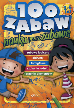 100 zabaw to doskonała pozycja dla dzieci w wieku 2-6 lat. Zadanka ułożone są tematycznie - w poszczególnych działach znajdują się labirynty, łamigłówki, łączenie elementów, szukanie różnic, zabawy logiczne. Wszystkie zadania ułożone są w kolejności od najprostszych do najtrudniejszych. Ponadto przy każdym zadaniu jest skala trudności, która określa, jak trudne jest to zadanko.