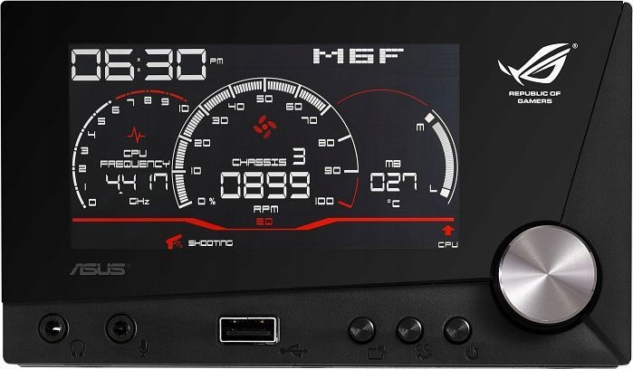 Панель ROG Front Base легко помещается в два кармана для 5,25-дюймовых станций и он оснащен большим экраном с интуитивно понятным интерфейсом, управляемым обычным циферблатом и кнопками.