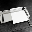 Na podstawie trymera znajdziesz siatkę pomiarową co ¼ cala z oznaczeniami standardowych rozmiarów kartek. A gdy skończysz pracę, rozsuwane linijki łatwo schowasz, oszczędzając miejsce. Chcesz ciąć czy bigować? Włóż papier pod spring-lift blade track, ustal pozycję, naciśnij i przesuń ostrze. I voilà!