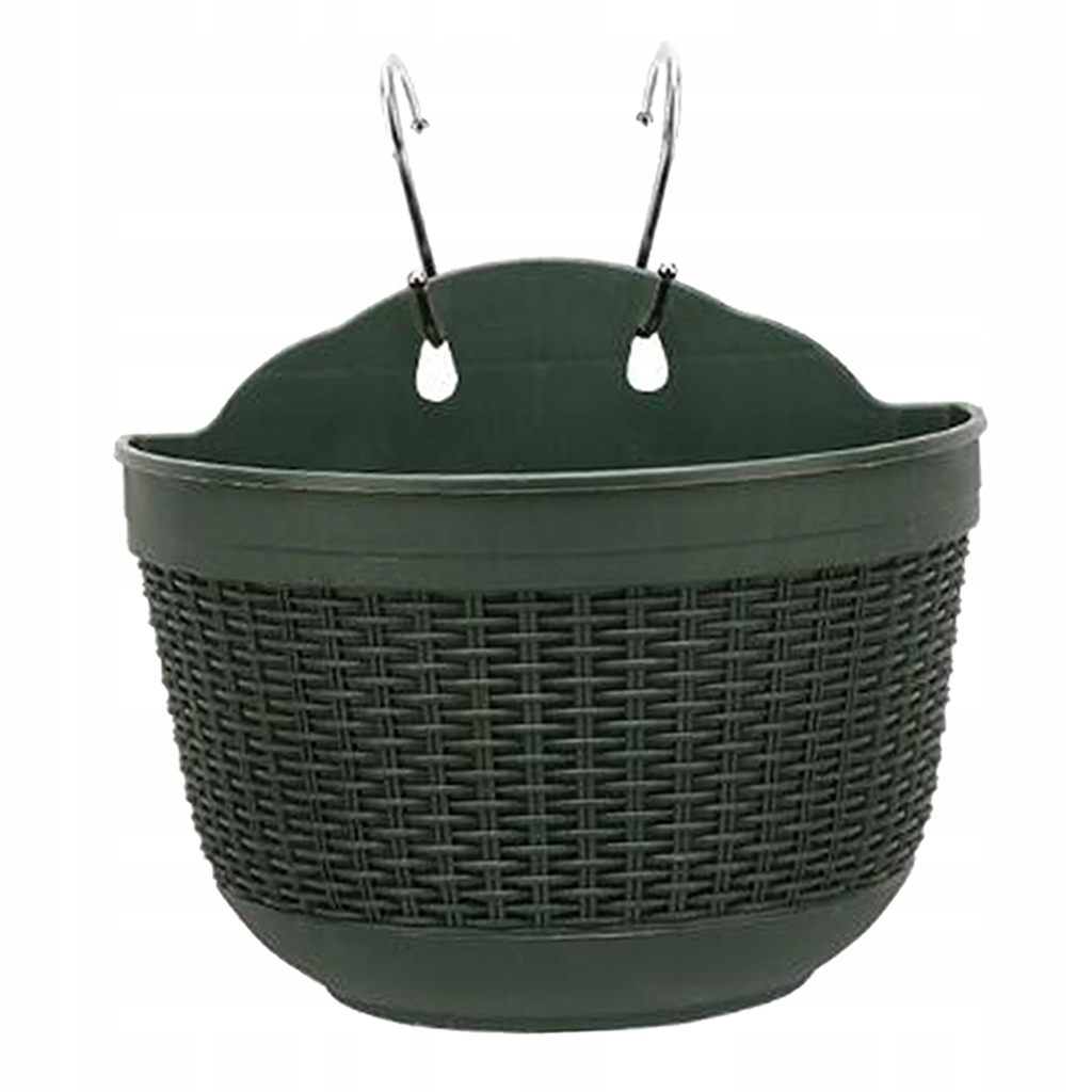 Plastikowy wiszący kosz na rośliny z rattanu, doniczka ogrodowa z haczykiem, ciemnozielony, rozmiar L