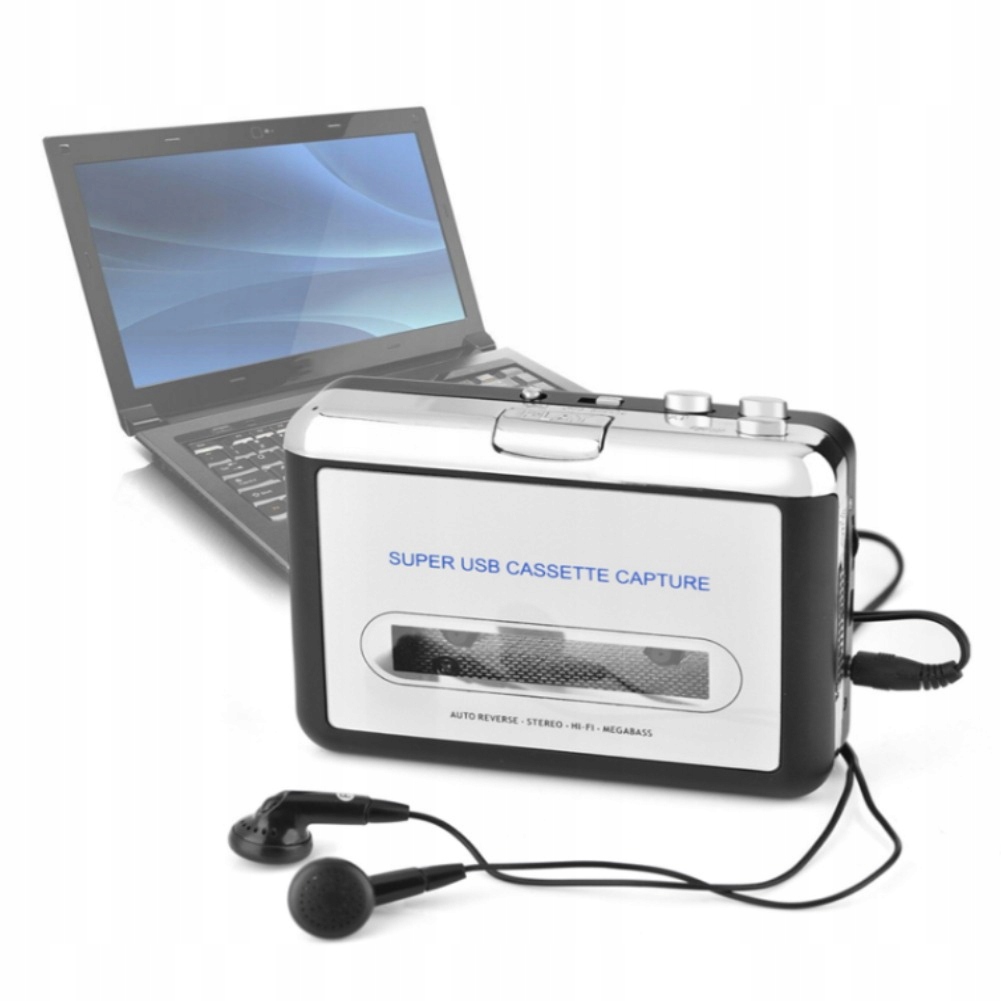 Dzięki odtwarzaczowi kasetowemu USB możesz łatwo przekonwertować swoje stare kasety na format MP3! Wystarczy podłączyć go do komputera stacjonarnego lub laptopa (nie są wymagane żadne sterowniki), włożyć kasetę i nacisnąć przycisk Play. Następnie wystarczy kliknąć „Nagraj” w oprogramowaniu do nagrywania (w zestawie), a Twoja muzyka zostanie przekształcona w format cyfrowy. Możesz zapisać swoją muzykę w formacie MP3 i umieścić ją w telefonie komórkowym/tablecie/odtwarzaczu MP3.