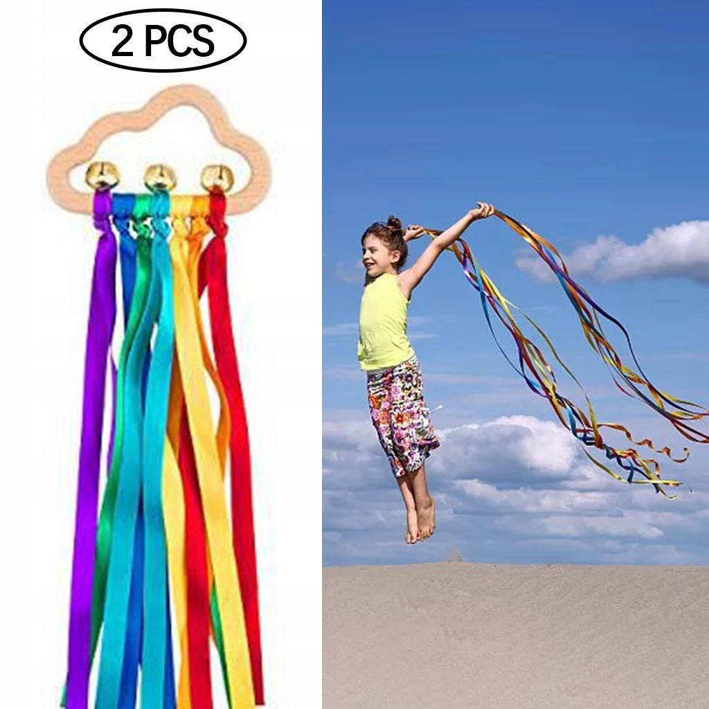 Tęczowa wstążka ręczna Latawiec Montessori z dzwoneczkami Kreatywny dla dzieci Maluch