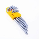 Zestaw kluczy imbusowych HEX z nawierconymi otworami w obu końcówkach roboczych co pozwala to na precyzyjne lokowanie klucza w gnieździe wkrętu. wykonany ze stali chromowo-wanadowej.