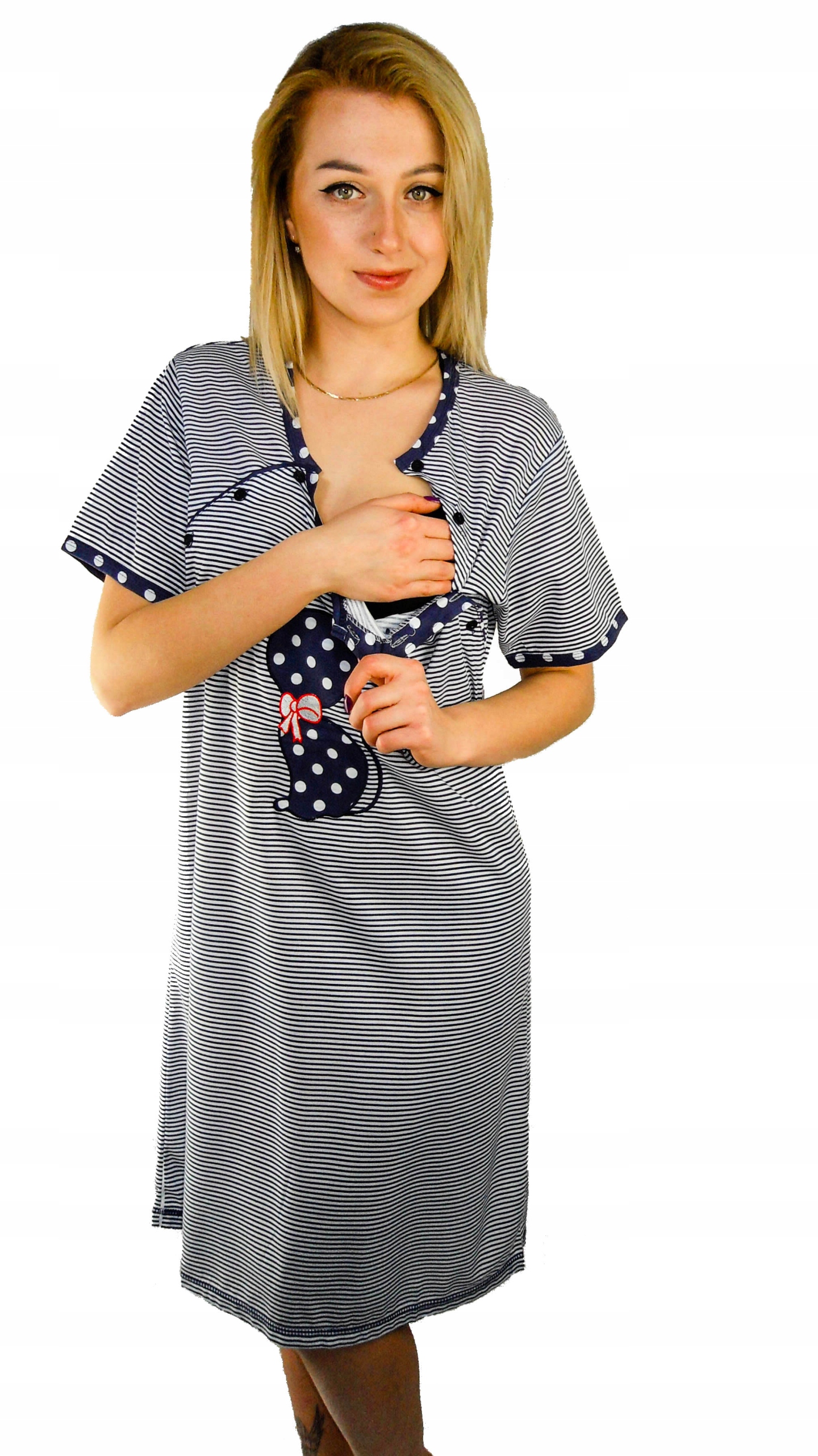Wyjątkowe, komfortowe koszule nocne dla kobiet karmiących piersią, dekolt skonstruowany aby umożliwić dyskretne karmienie dzidziusia, zapinana na guziczki.
