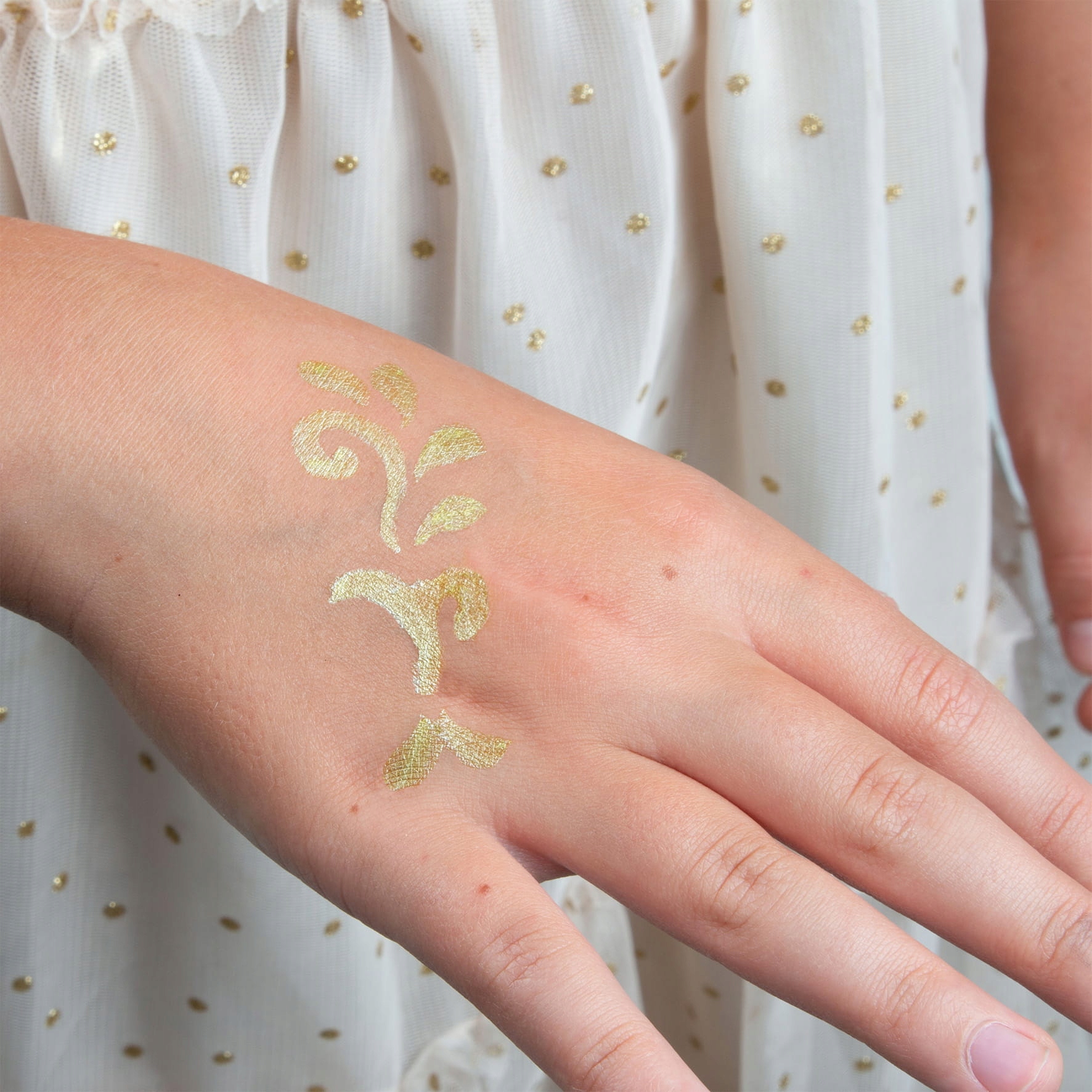 Brokatowe markery do tauażu Kidea odmienią image razem! Zestaw zawiera aż 12 szablonów, dzięki którym wykonasz perfekcyjny tatuaż oraz 3 brokatowe markery (różowy, niebieski, srebrny) o niezwykłych metalicznych kolorach. Wystarczy przyłożyć szablon w dowolne miejsca na skórze i pokolorować. Do zmycia tatuażu najlepiej użyć płynu do demakijażu. Idealnie sprawdzą się podczas wakacji, balu przebierańców oraz karnawału. Markery są bezpieczne w użytkowaniu, co potwierdzają przeprowadzone testy dermatologiczne.