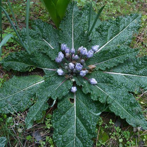 ✅ Растение с тонкими, светло-зеленые листья, цветы фиолетового или белого цвета и корни с формой человека.