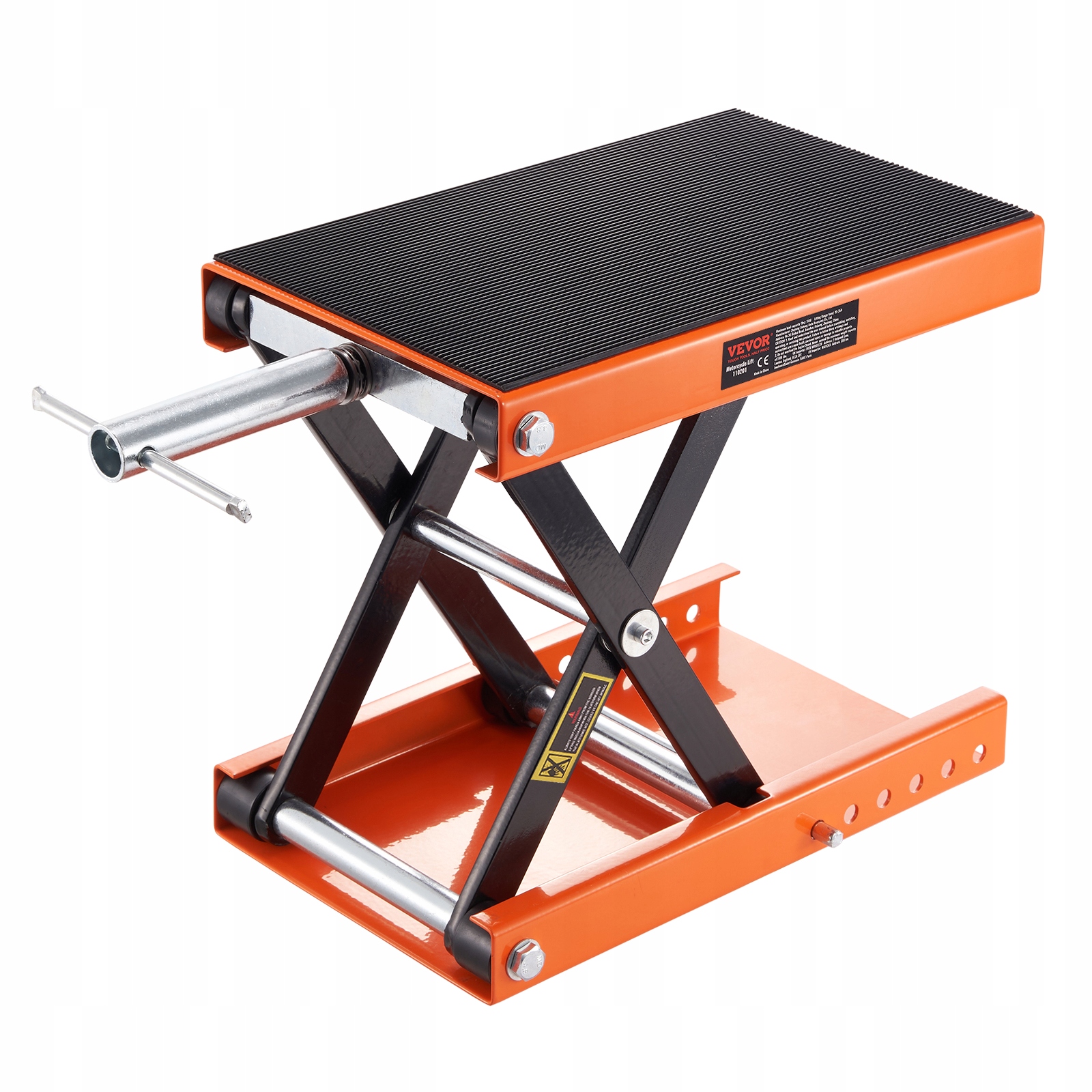 Ten podnośnik do nożyczek motocyklowych ma maksymalną nośność 1100 funtów/0.5 tony i może podnosić prawie większość motocykli turystycznych, krążowników i innych motocykli.