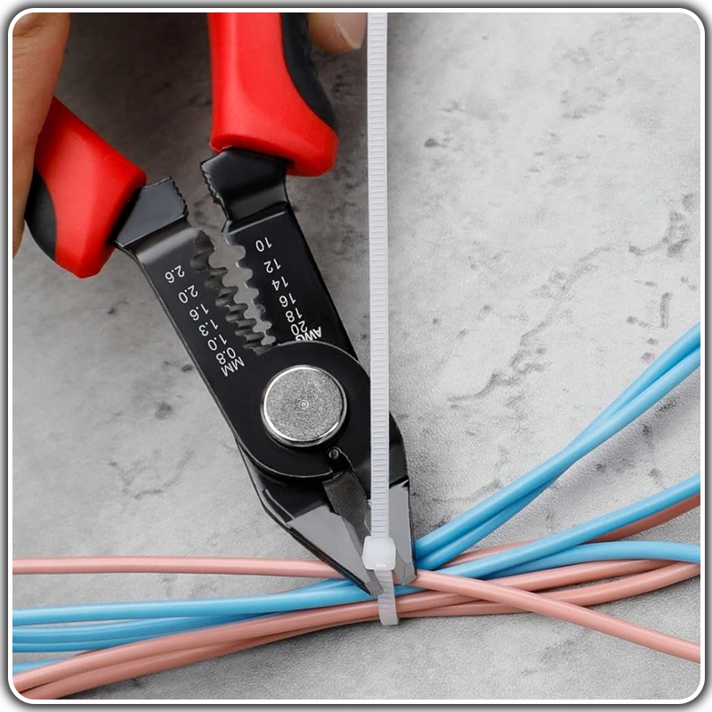 ⭐ Szczypce wyposażone są dodatkowo w korpusie w ściągacze izolacji dla przewodów w rozmiarach 0.8 - 2.6 mm (20 - 10 AWG).