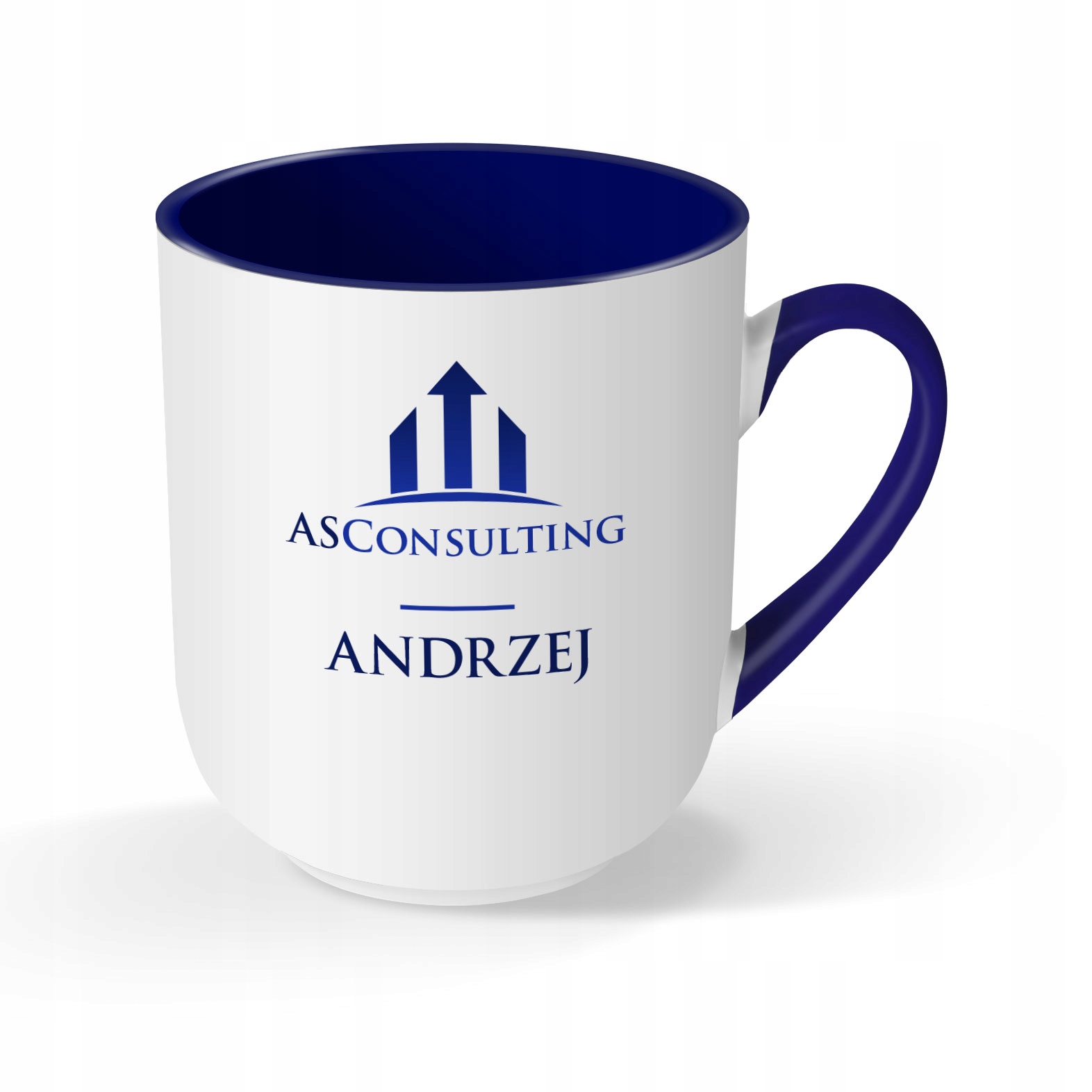 Kubek z nadrukiem może być personalizowany np. na każdym kubku może zostać nadrukowane logo firmy i imię pracownika.