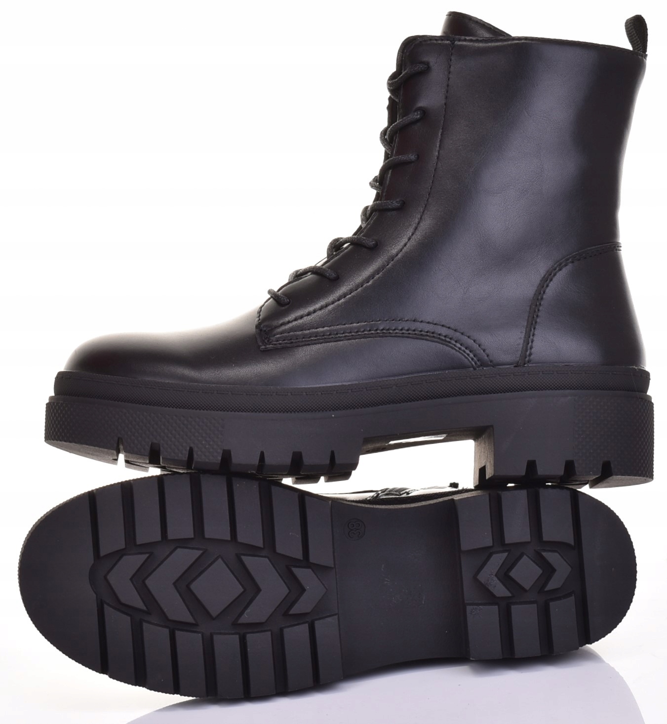 Buty posiadają klasyczną, traperowatą podeszwę. Dobrze poradzą sobie na ośnieżonych chodnikach.