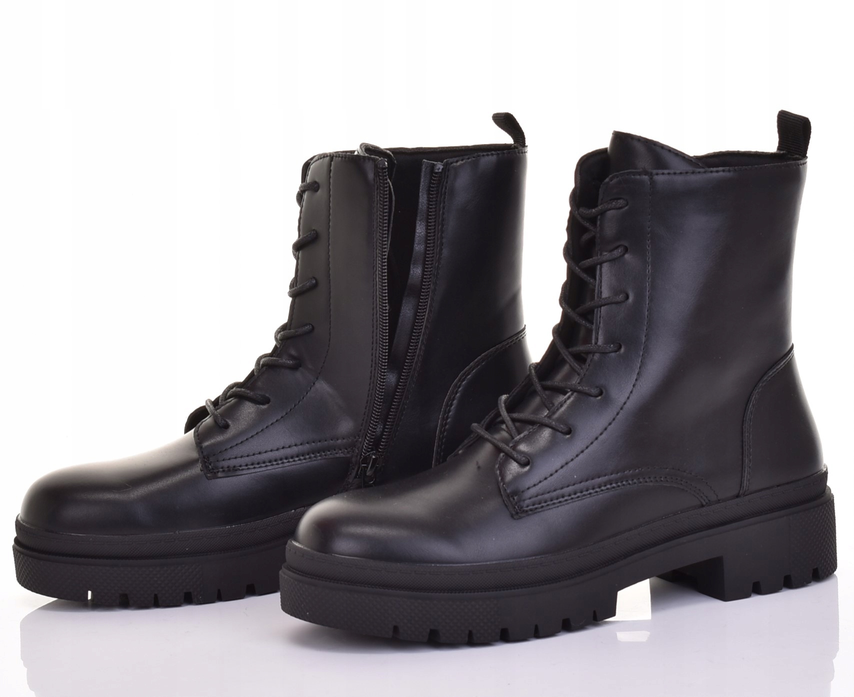 Botki wsuwane, zakładanie ułatwia zamek wszyty od wewnętrznej strony, klasyczne sznurowanie może służyć tylko jako ozdoba.
