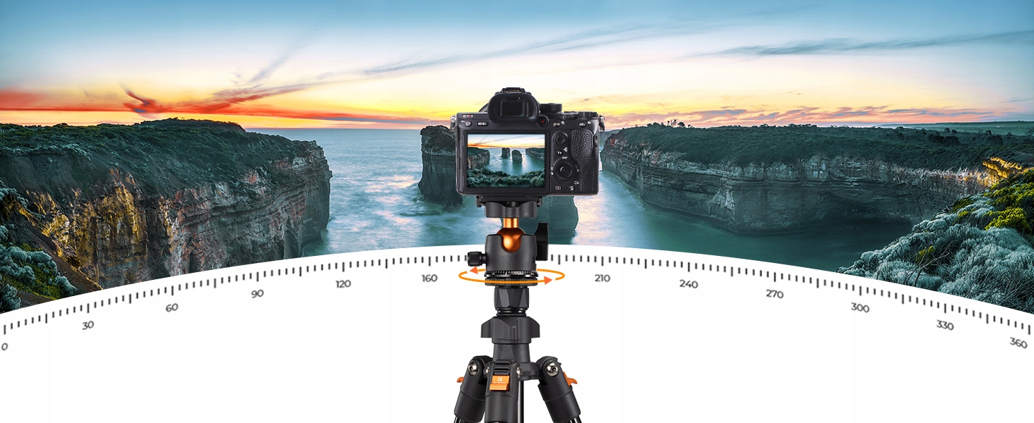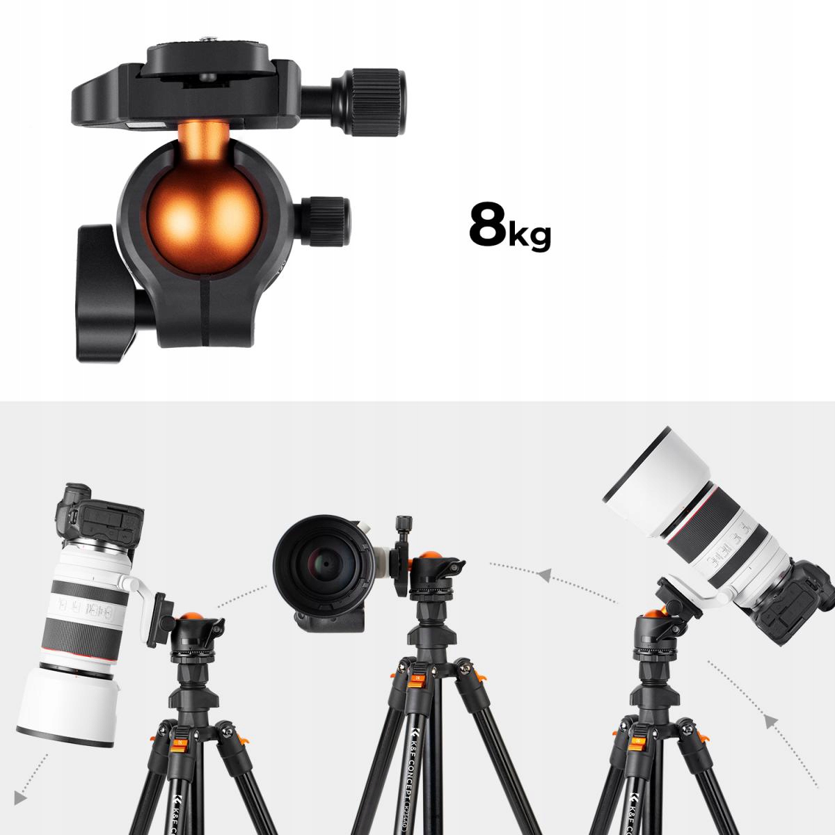 Duża metalowa głowica kulowa KF-28 o średnicy 28 mm zapewnia nośność 8 kg, można ją obracać o 360 stopni, co pomaga rozszerzyć zakres aktywności aparatu podczas fotografowania panoramicznego.