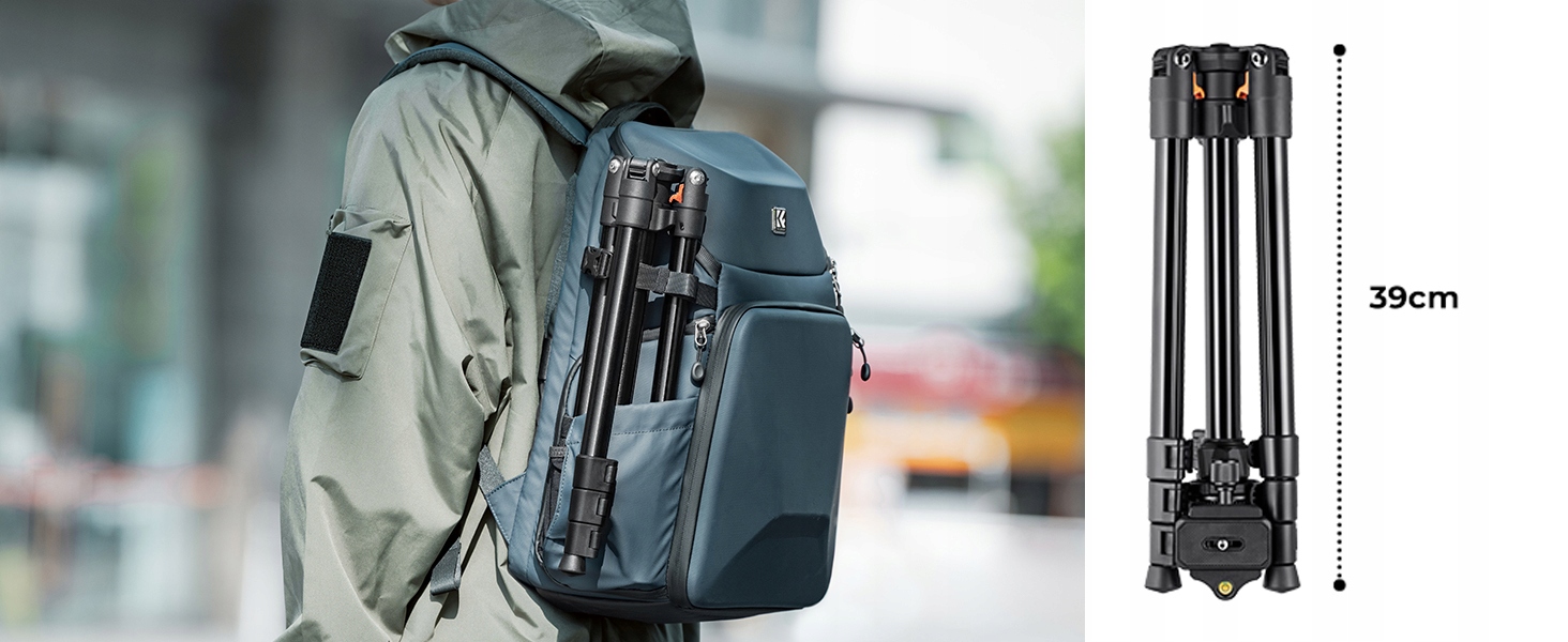 Statyw z głowicą kulową waży tylko 1,16 kg, można go złożyć do 39 cm i łatwo schować do plecaka lub walizki podczas podróży.