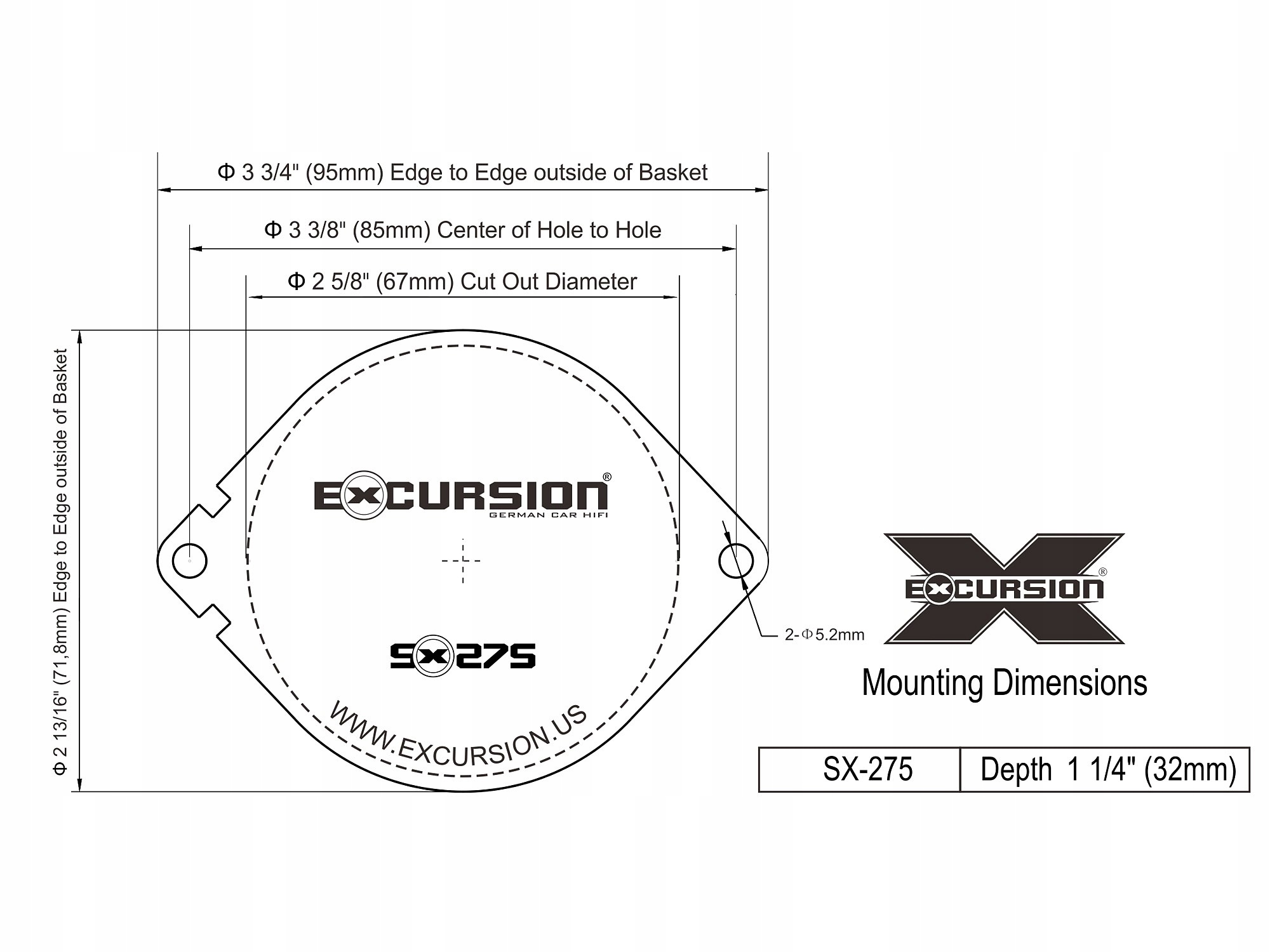 Фирменные широкополосные автомобильные среднечастотные динамики Excursion серии SX (Street eXcursion) с конической диафрагмой АЦП диаметром 70 мм из двух слоев прессованной бумаги. Эти динамики предназначены для лучшей замены акустические системы OEM предназначены для установки в заводских местах на автомобилях Chrysler, Jeep, Dodge i Ford USA. Они предлагают солидный и сбалансированный звук в диапазоне средних и высоких частот частоты акустической полосы. Благодаря небольшим размерам (2,75") эти динамики также могут быть успешно используется во многих других приложениях.