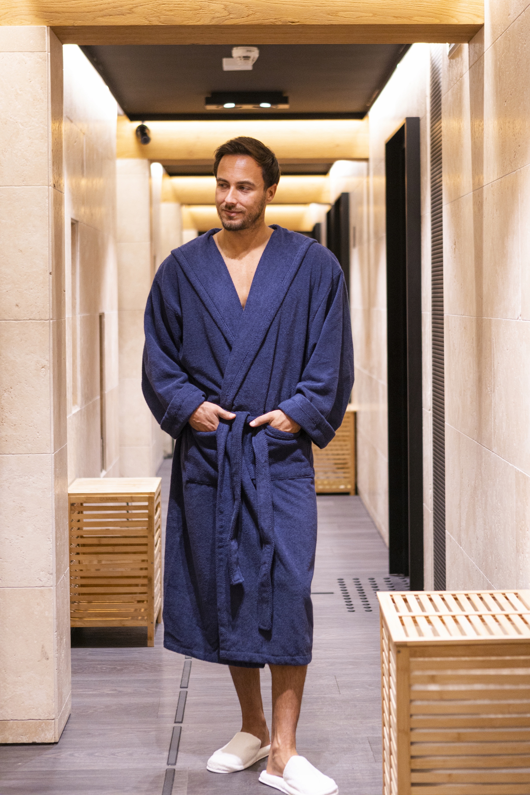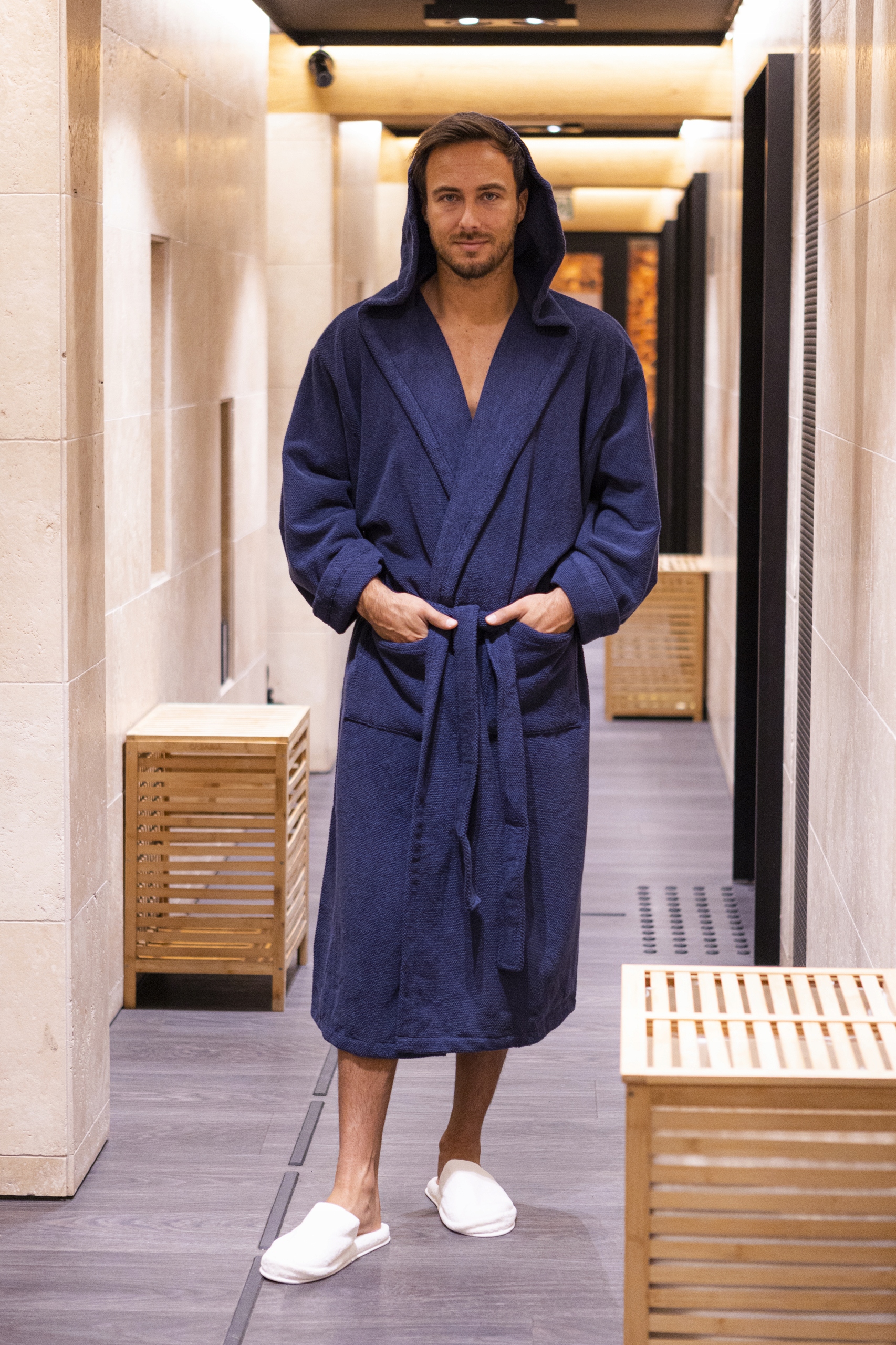 Szlafrok UNISEX z Kapturem - 450g/m2 - rozmiar "XL" - kolor Granatowy.