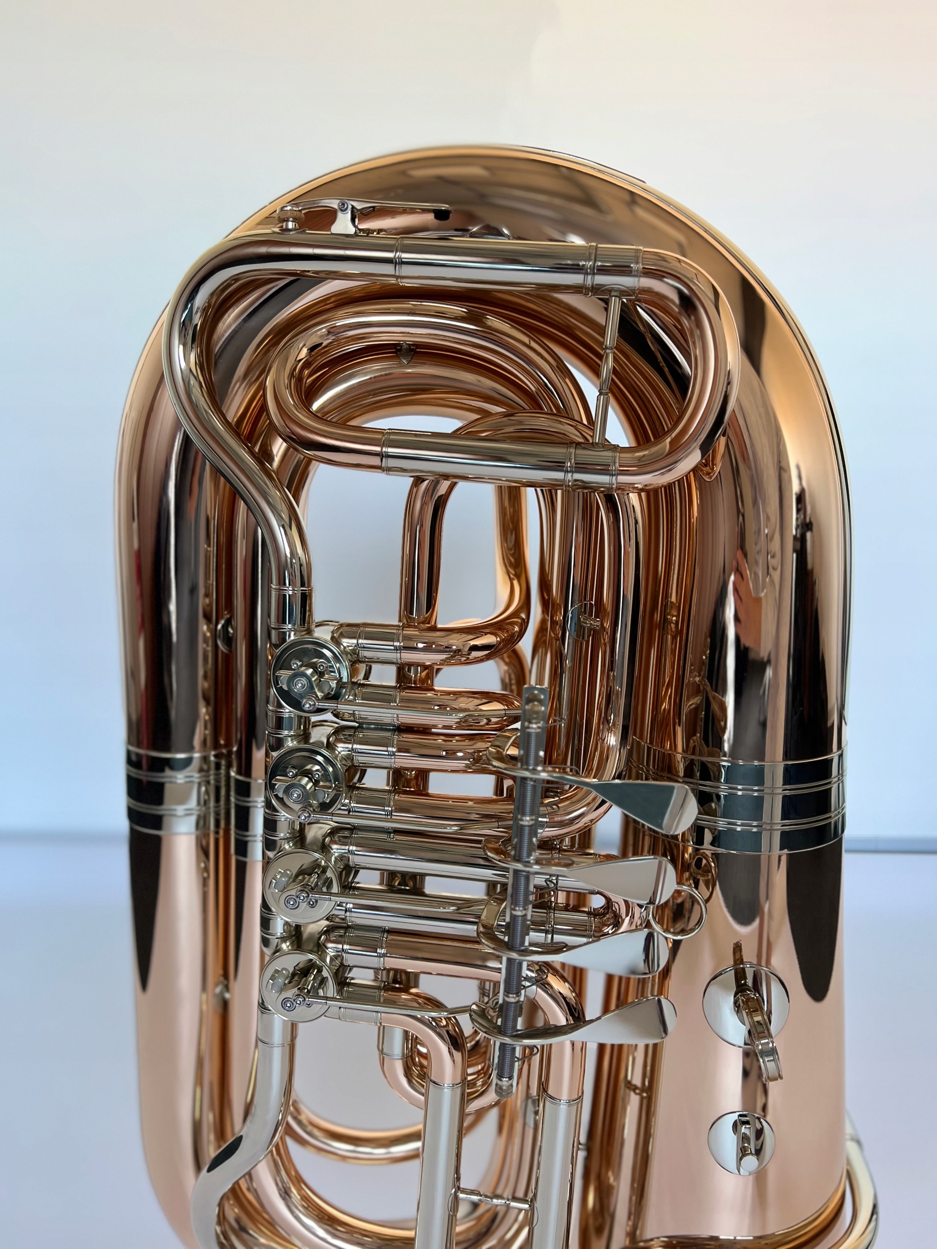Tuba B LBB 783-4R (ARION) charakteryzuje się kompaktową budową, którą docenisz podczas częstego przenoszenia i podróżowania z instrumentem. Doskonałe brzmienie i intonacja są oczywistością w przypadku tego instrumentu. Złoty mosiądz nadaje instrumentowi szersze, bardziej miękkie brzmienie. Posiada płytę rezonansową z wieńcem pakfong, cztery zawory obrotowe, ustnik pakfong i wykończenie lakierem bezbarwnym. Płyta rezonansowa instrumentu jest ozdobiona grawerem. W zestawie znajduje się posrebrzany ustnik i futerał.