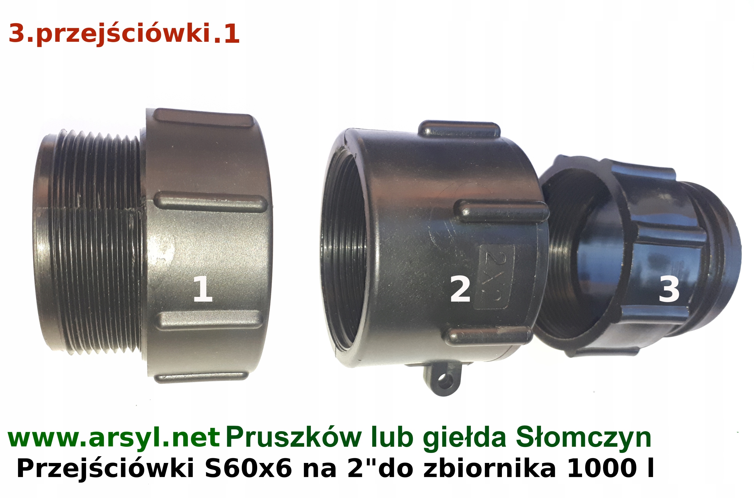 Przedmiotem sprzedaży jest zestaw do połączenia 2 zaworów (1 zdjęcie} z typowym gwintem S60x6 stosowanym w zbiornikach 1000 l do wody.