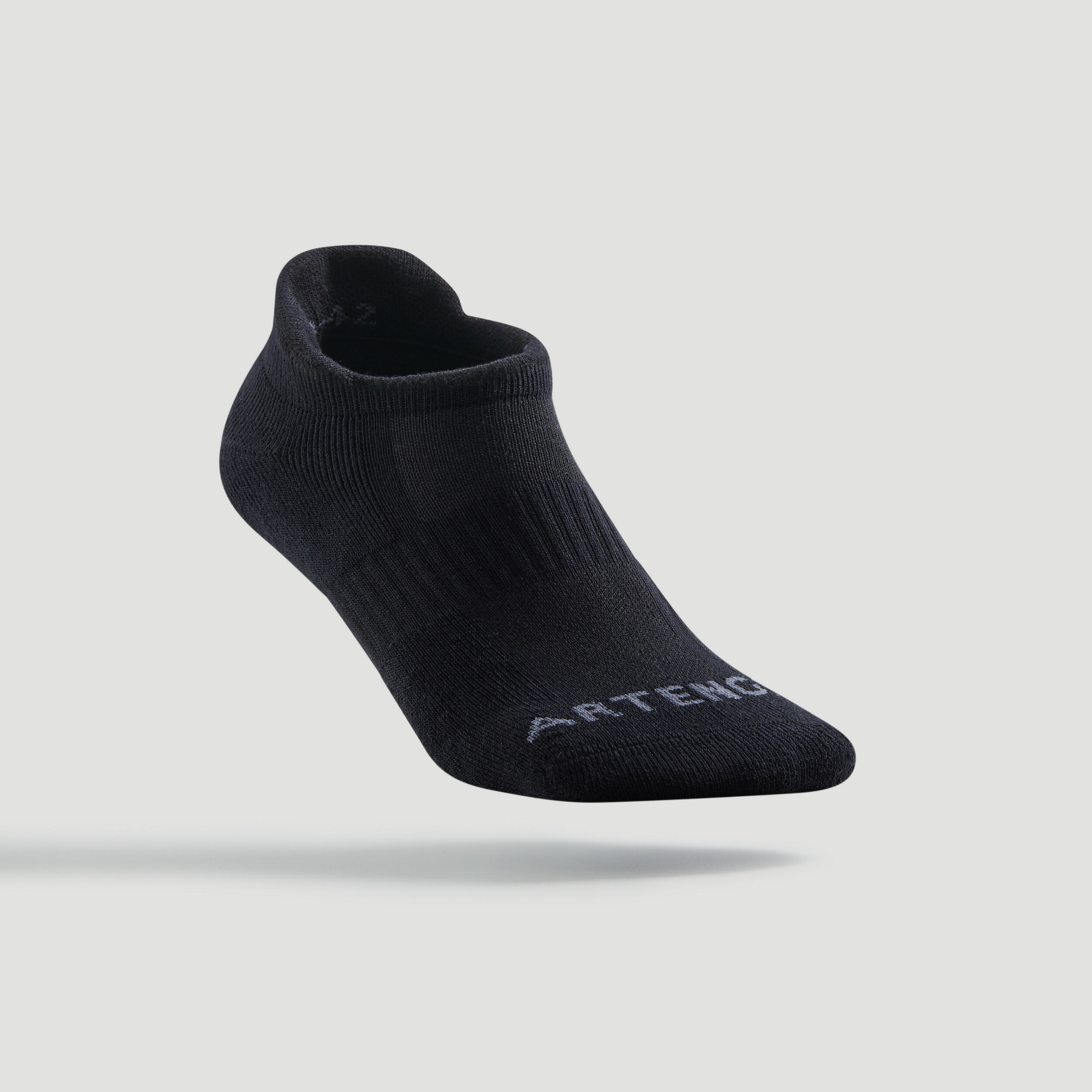 Dla średnio zaawansowanych tenisistów i tenisistek. Wygodne i wytrzymałe, dobrze trzymają się na stopie podczas gry. Sportowa skarpeta z frotte na całej długości stopy: większa wygoda i pochłanianie wilgoci. Strefa wentylacji w górnej części. Ściągacz w śródstopiu zapewnia dobre trzymanie. W zestawie 3 pary.