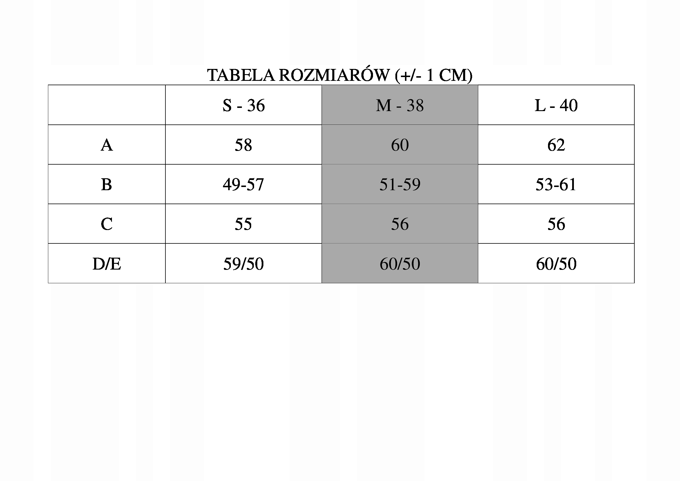 D/E - długość rękawa po zewnętrznej/od pachy