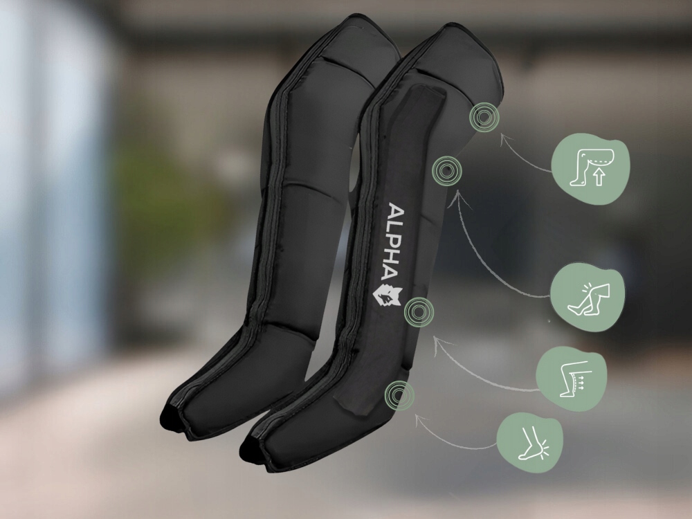 Alpha AMP-04 to zaawansowane urządzenie do automatycznego drenażu limfatycznego, które skutecznie zmniejsza obrzęki, poprawia krążenie, wspomaga regenerację mięśni i naturalne procesy detoksykacyjne organizmu.