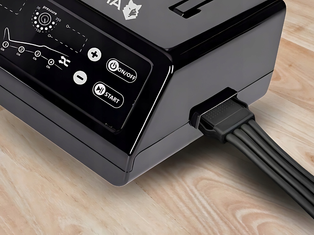Dzięki 6 trybom pracy, precyzyjnej kontroli ciśnienia oraz ergonomicznym mankietom zapewnia komfortowy i bezpieczny masaż uciskowy, idealny do regularnego stosowania w domowym zaciszu.